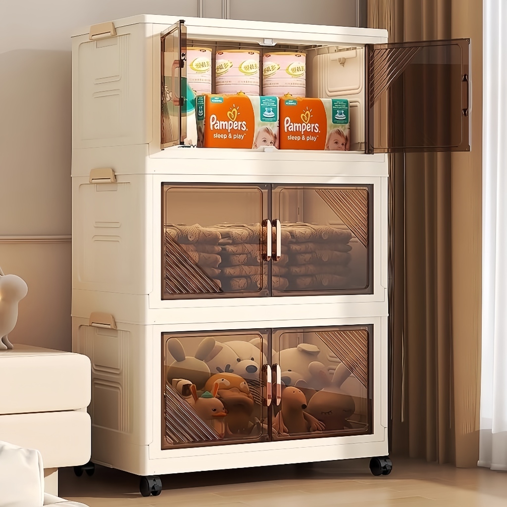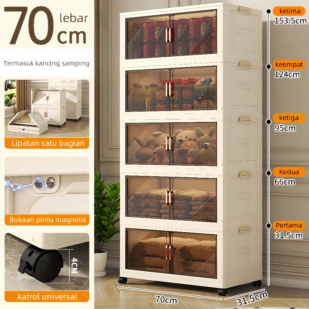 Dororice Lemari Plastik Susun Besar - Lemari Pakaian Anak & Bayi, Rak Baju Multifungsi, Organizer Hemat Ruang, Katrol Senyap, Anti Debu, Lebar 50cm/70cm