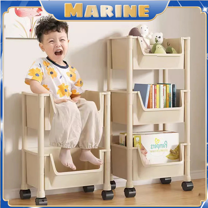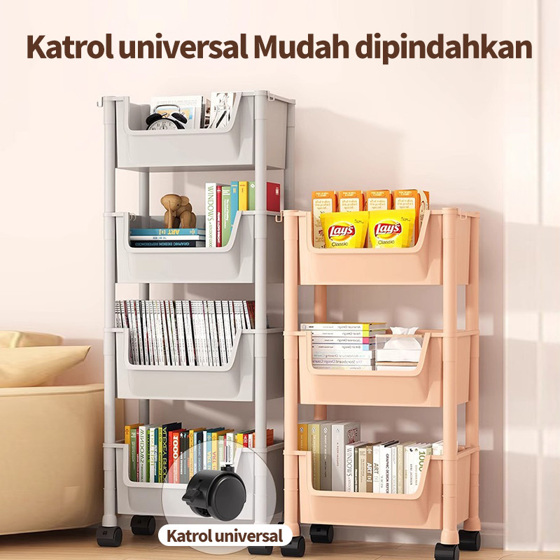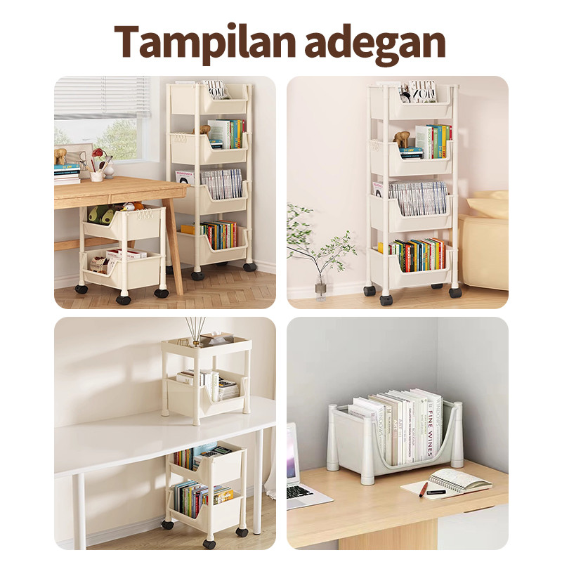 3/4/5 Tier Rak Susun Penyimpanan Rak Buku Portable Lemari Buku Plastik Dengan Roda Toy Storage Desk