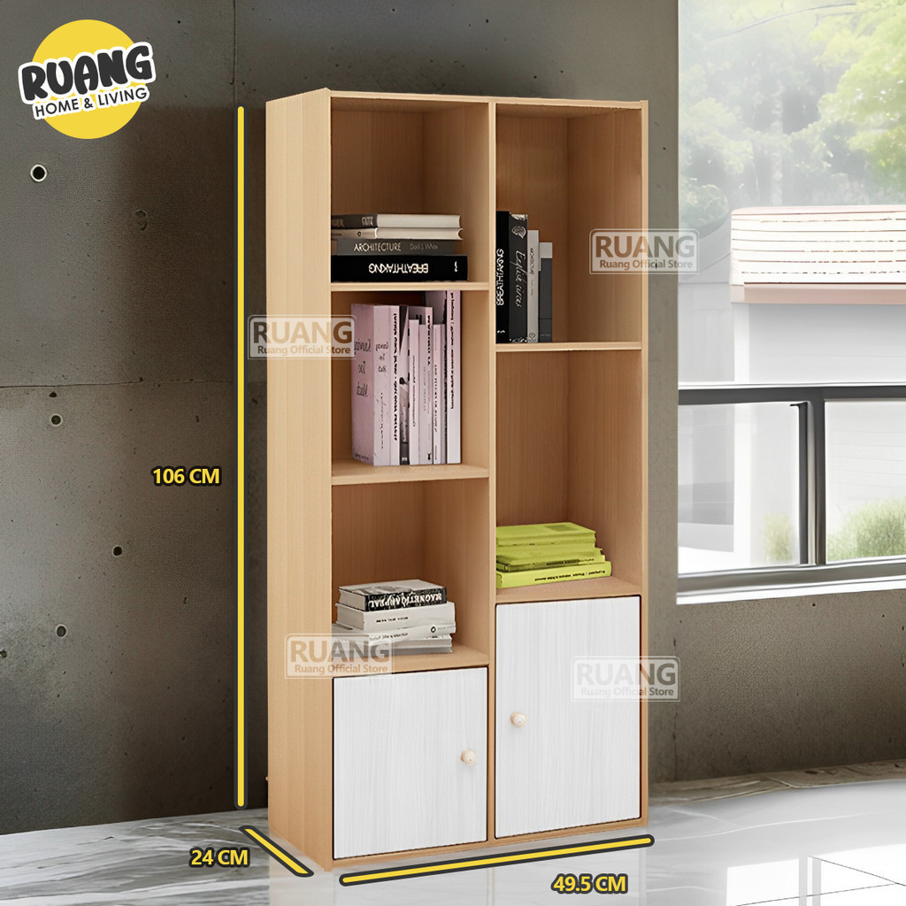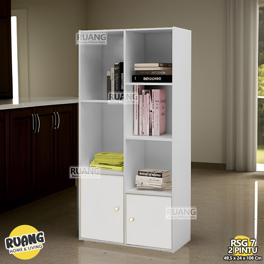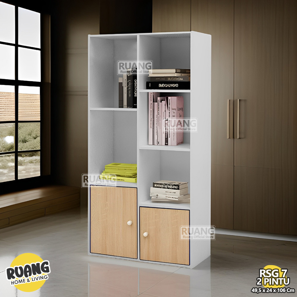 RSG 7 PINTU - Rak Serbaguna dengan Book Rack Rak Serbaguba 7 Susun Kayu Murah Lemari Buku
