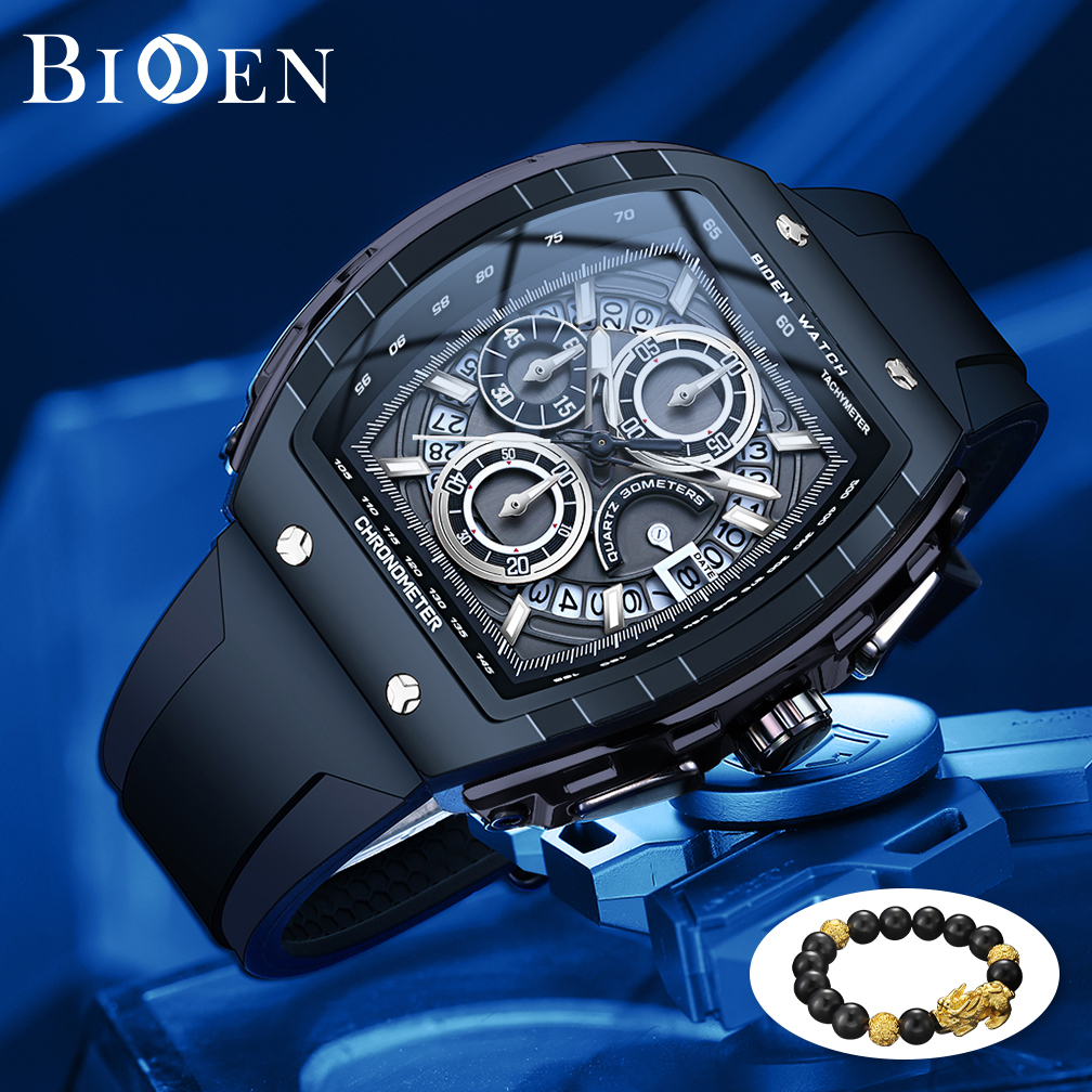 BIDEN Jam Tangan Pria Anti Air Olahraga Multifungsi Tali Silikon Pria Jam Tangan Cowok Original
