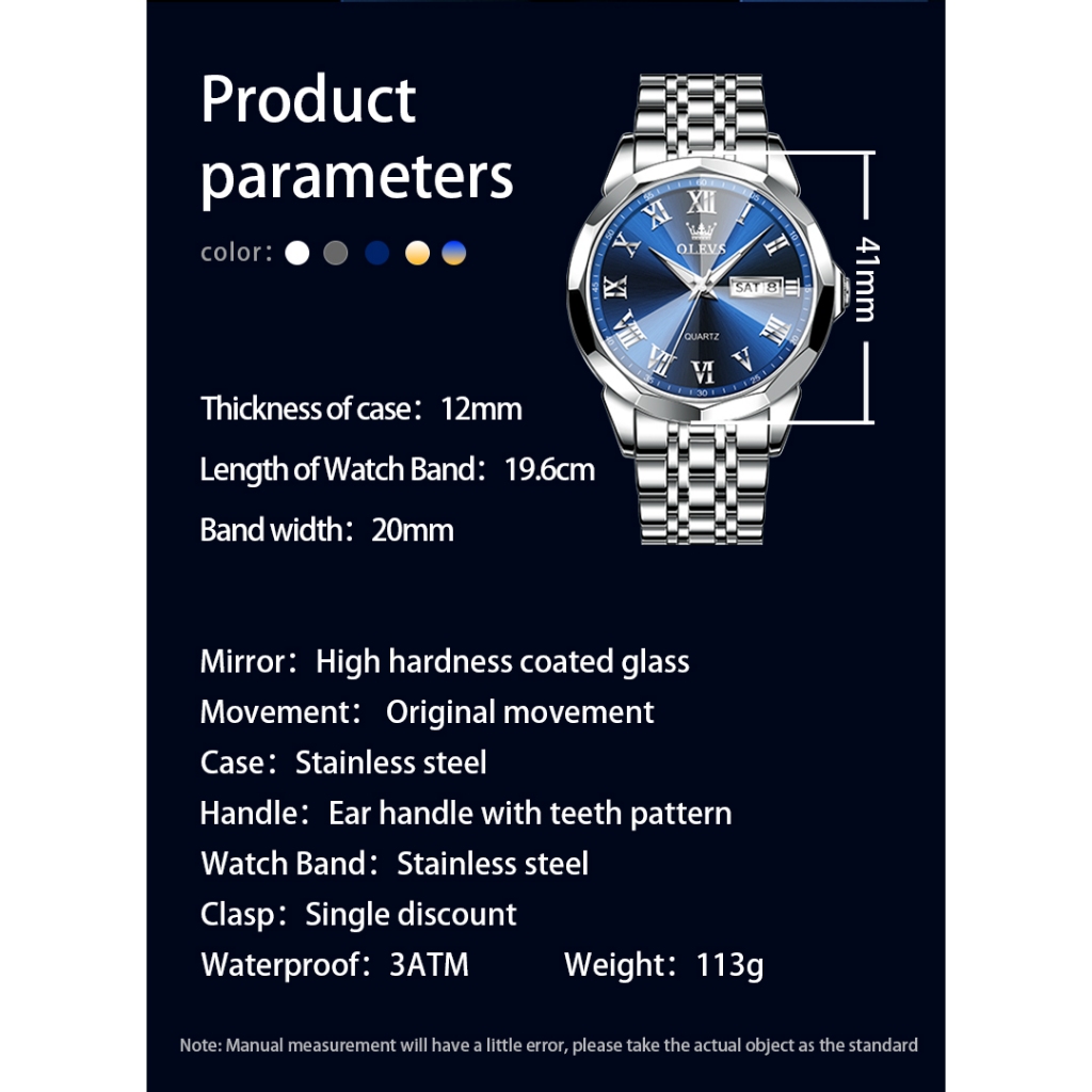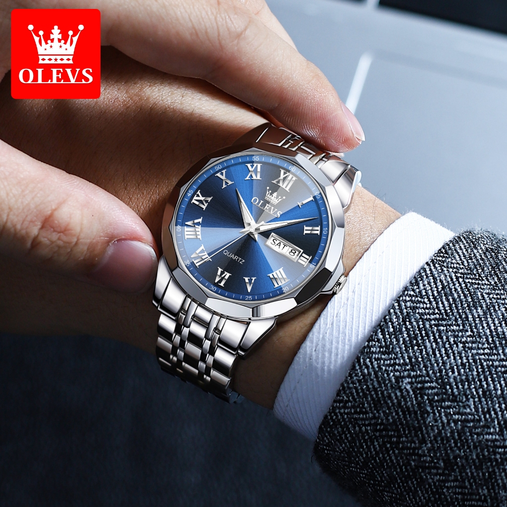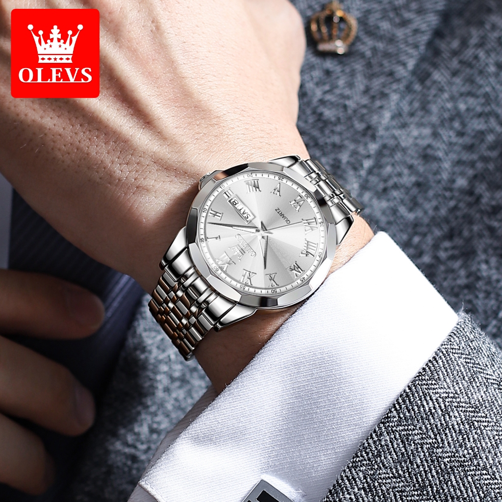 OLEVS Jam Tangan Pria Anti Air Original 100 PERSEN Stainless Steel Analog Casual Jam Tangan Rantai Pria