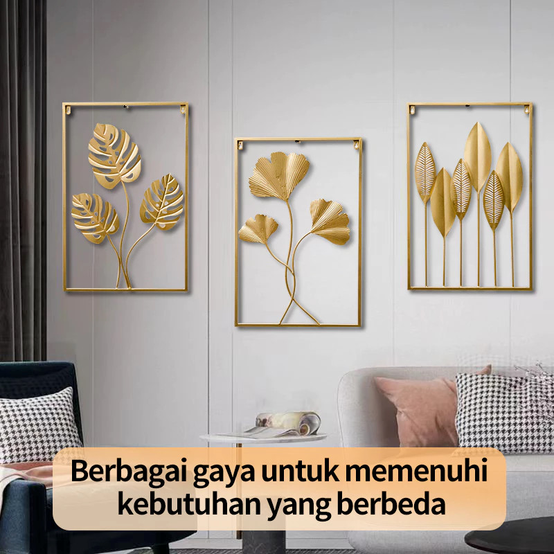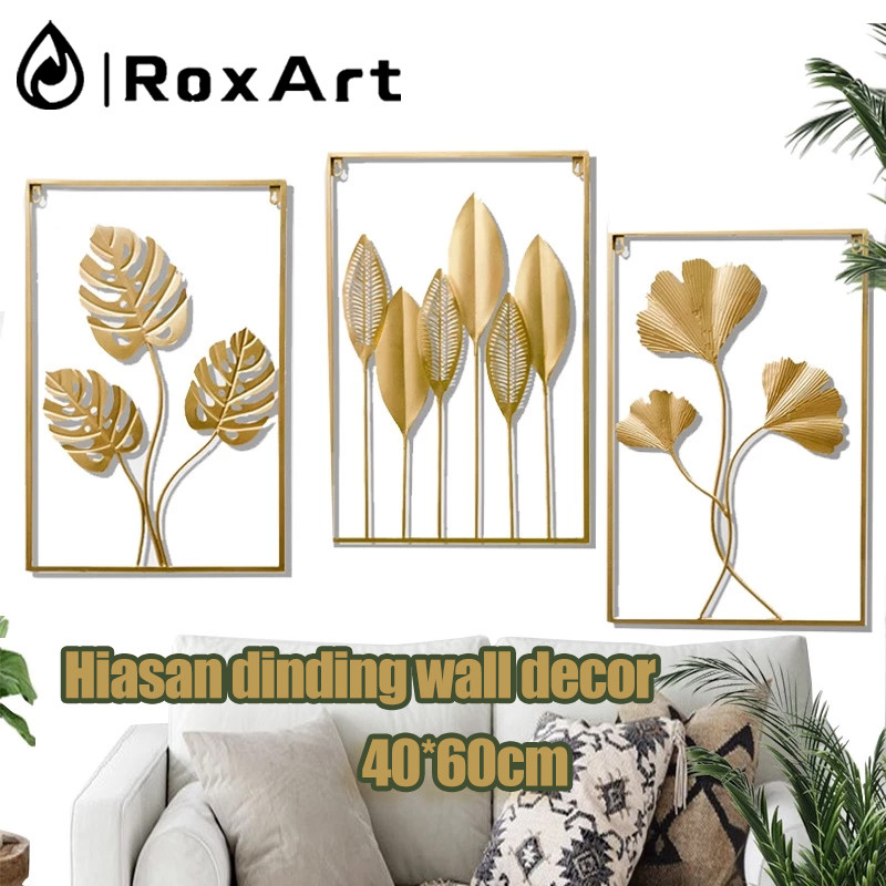 Roxart Hiasan Dinding Wall Decor 4060cm Bunga Daun Estetik Inding Besi Sofa Frame Metal Gold Daun