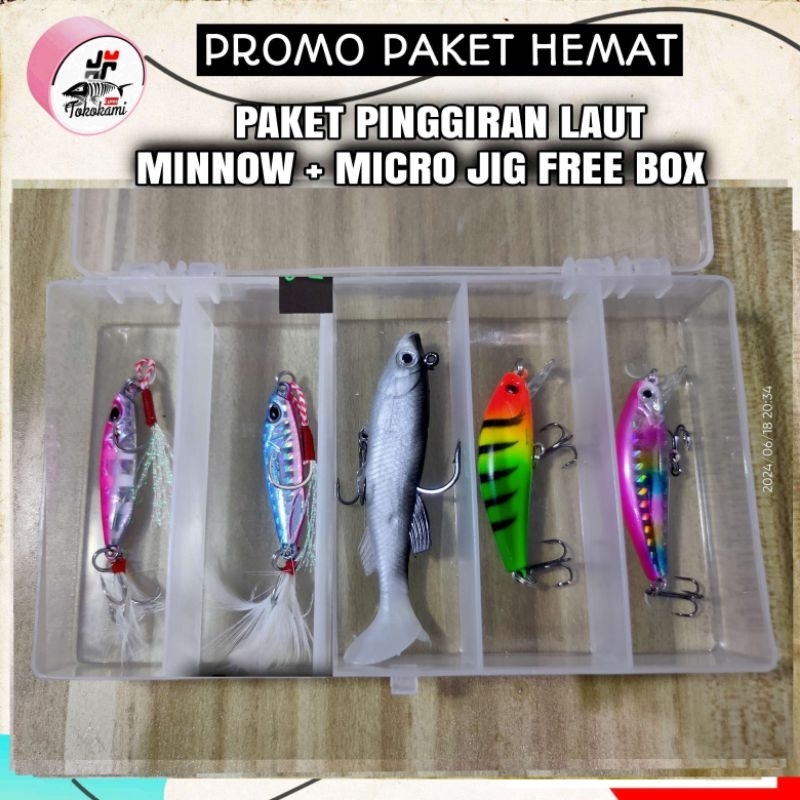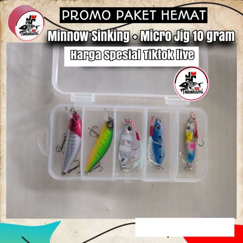 Paket hemat minow + metal jig sepaket isi 5 free box