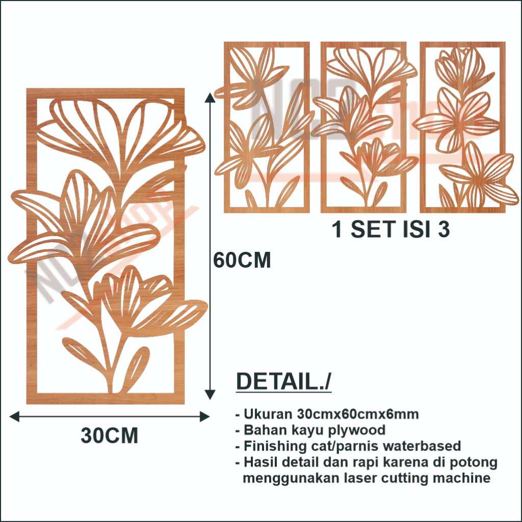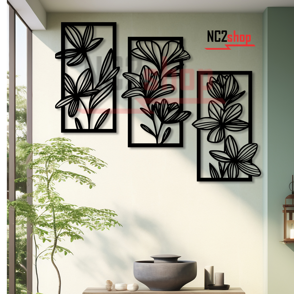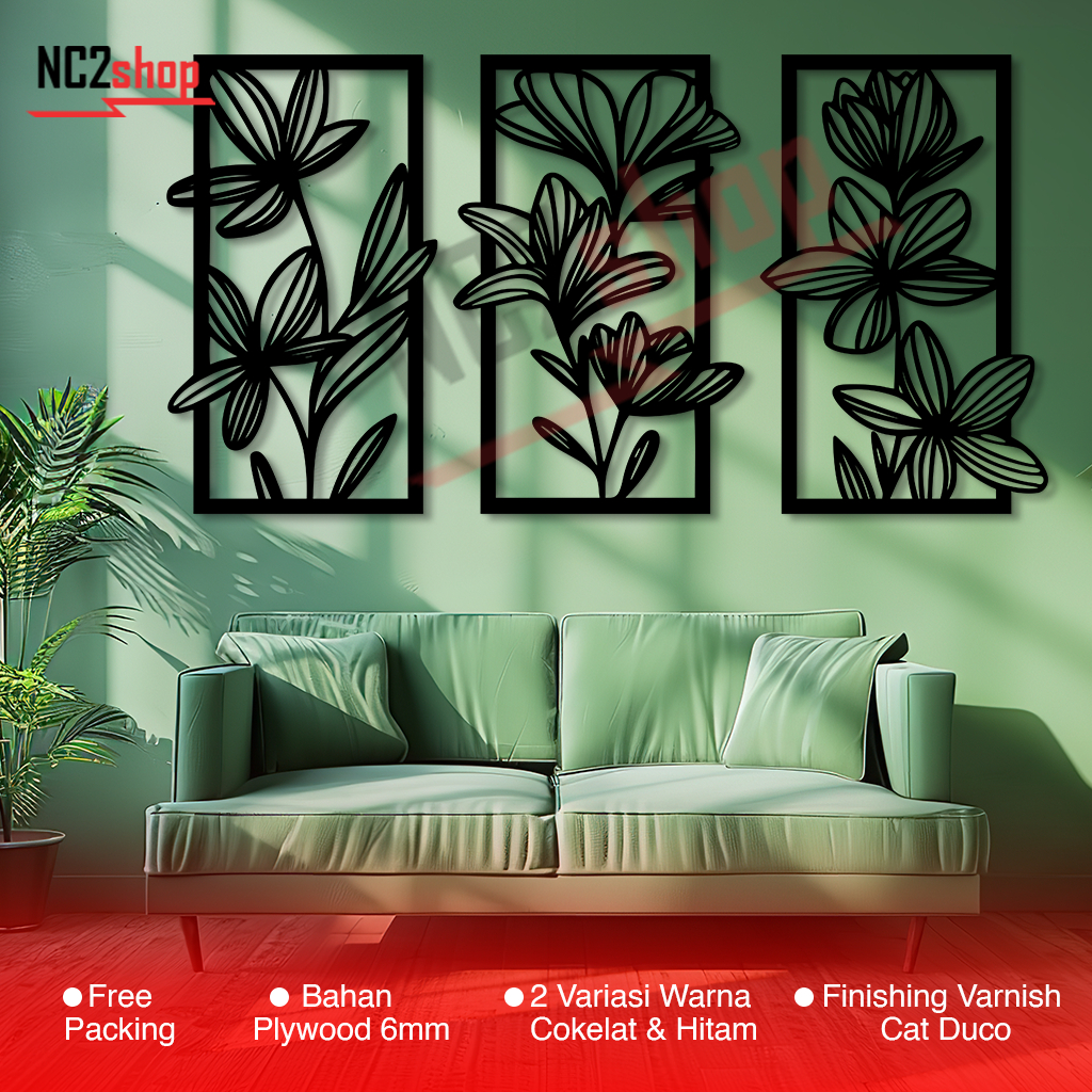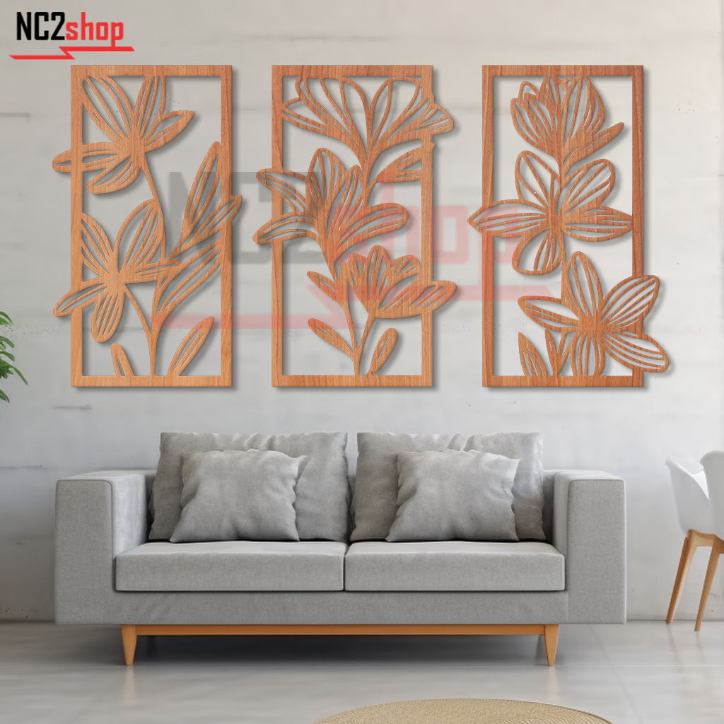 Minimalis Bunga Kayu Seni Dinding 3D Dekorasi Dinding untuk Ruang Tamu Kamar Tidur 3 Panel