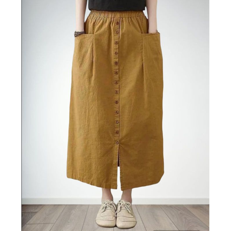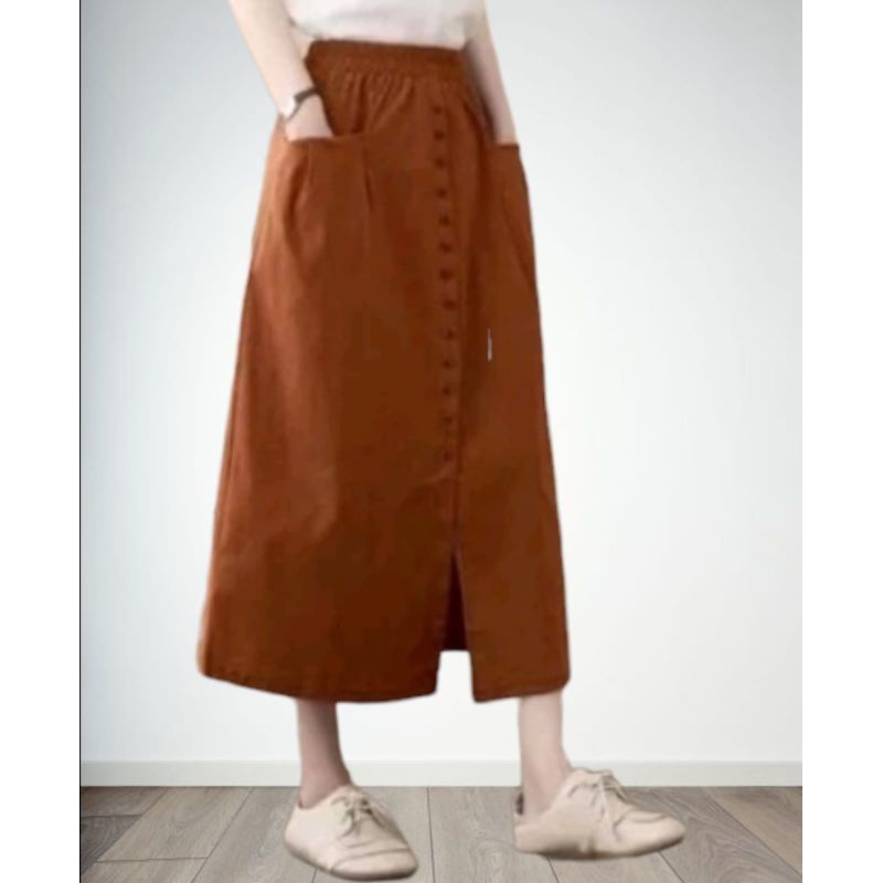 Casual button skirt Rok panjang wanita mode kancing terbaru premium viral Rok korean style jumbo kekinian