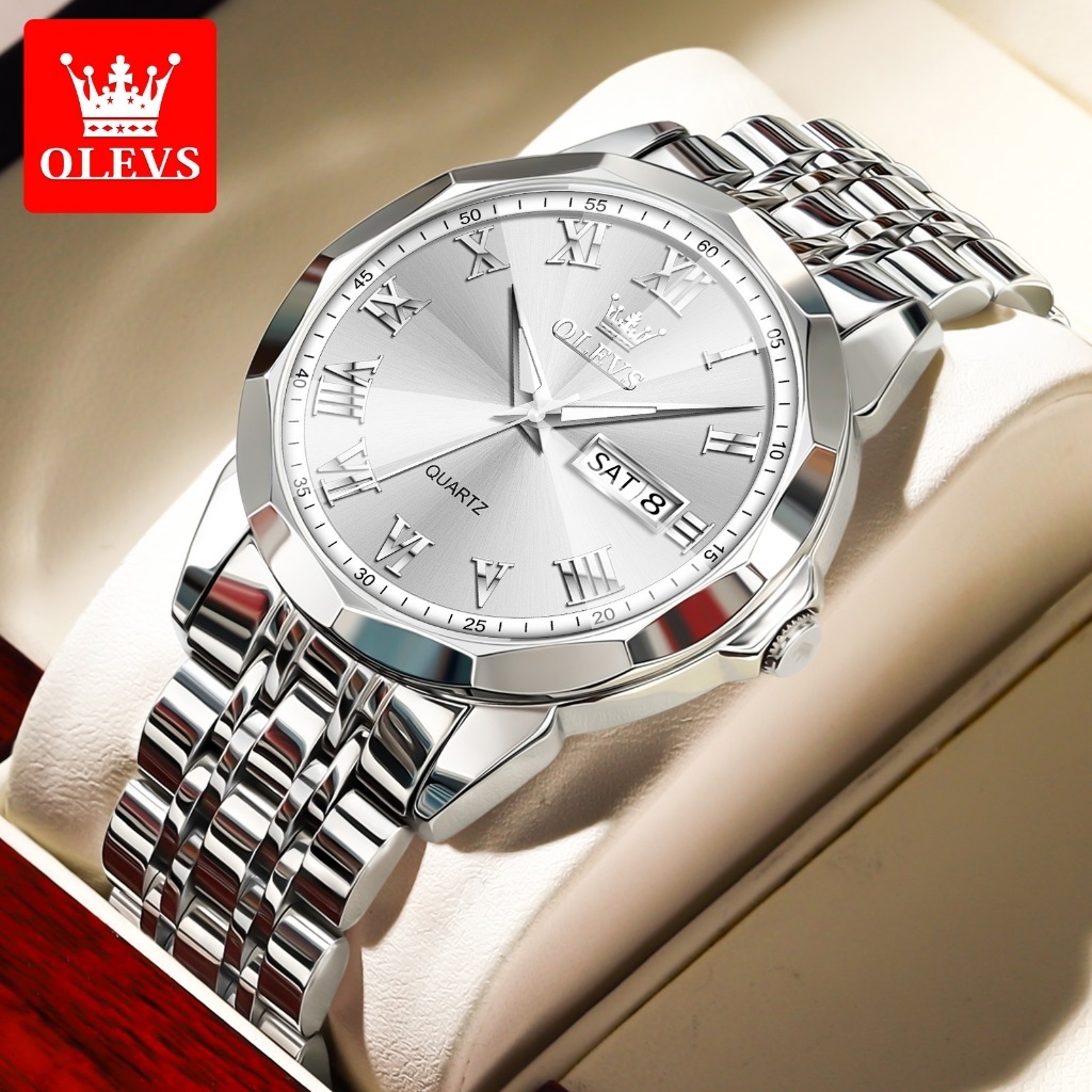 OLEVS Jam Tangan Pria Anti Air Original Branded 100 PERSEN Terbaru Kuarsa Stainless Steel Analog Murah Casual