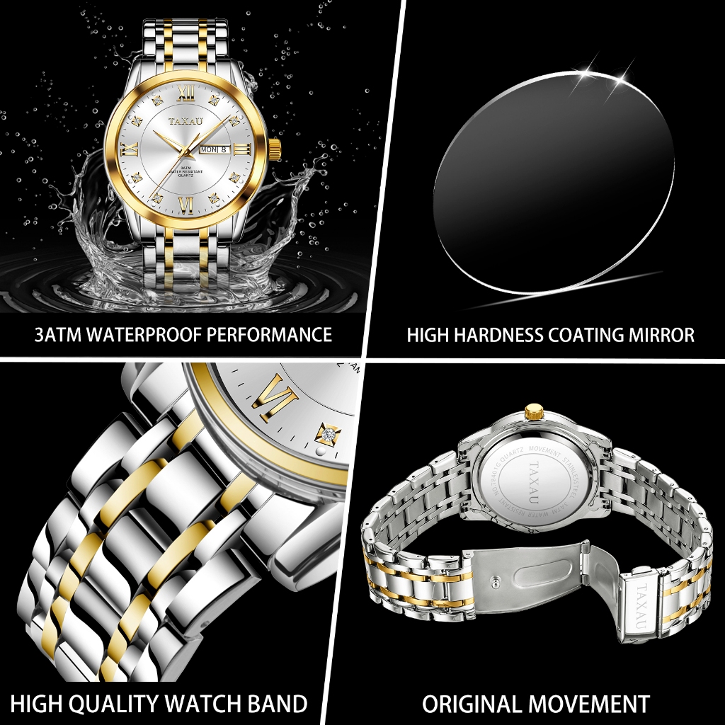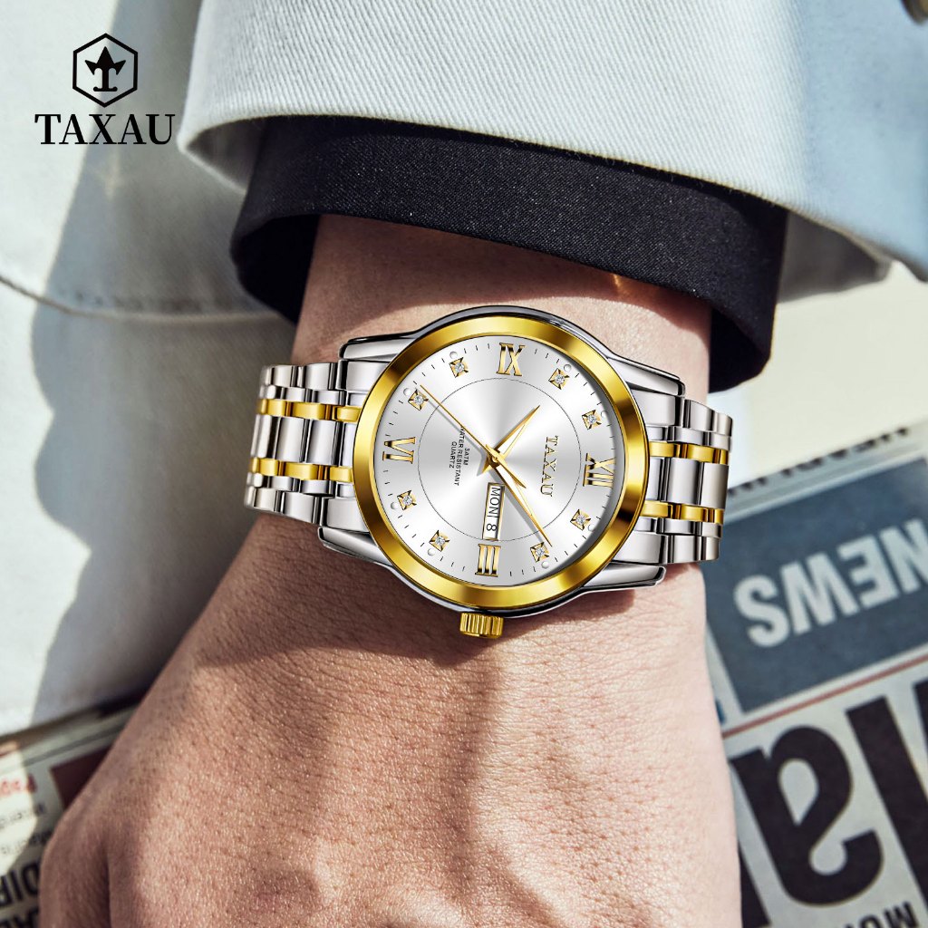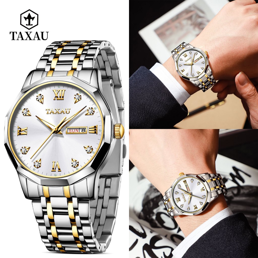 TAXAU Jam Tangan Pria Anti Air Original 100 PERSEN Terbaru Mewah Jam Tangan Rantai Pria Stainless Steel