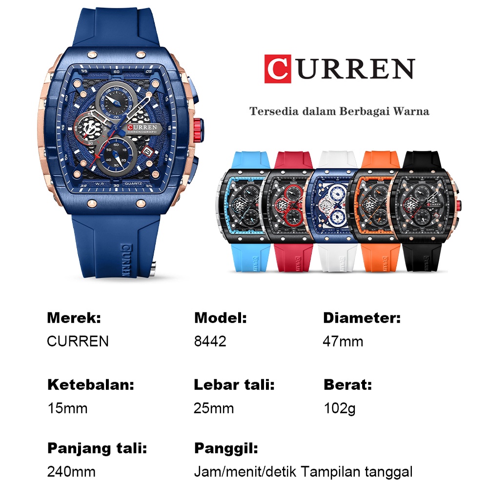 CURREN Jam Tangan Pria Keren Terbaru 2023 Anti Air Original Kronograf Tali Silikon