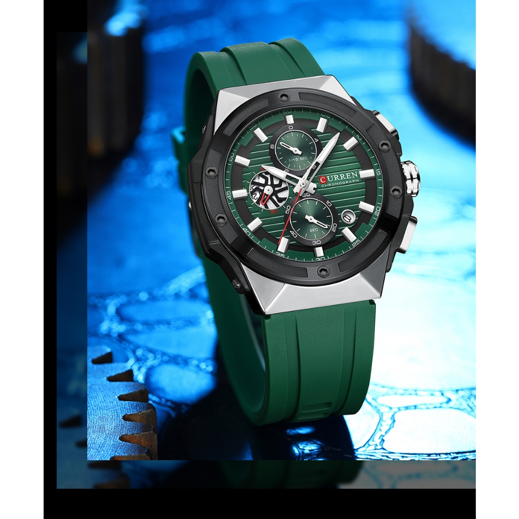 CURREN Jam Tangan Pria Anti Air Kuarsa Kronograf Bercahaya Original Tali Silikon Jam Tangan Cowok