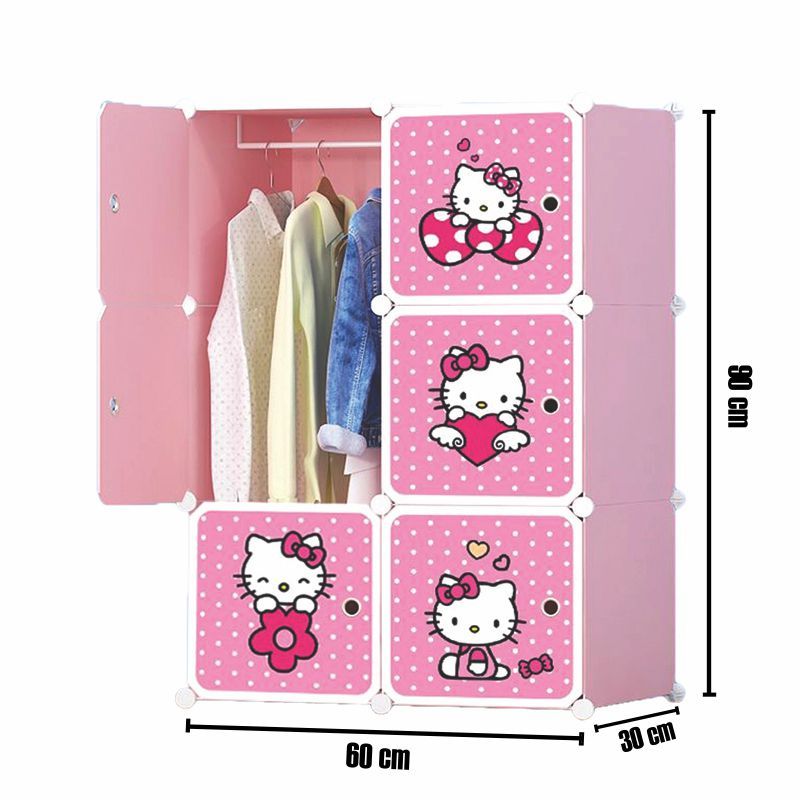 Hoas Lemari Pakaian Rakit Plastik 6 Pintu Lemari Portable Rak Baju Gantungan