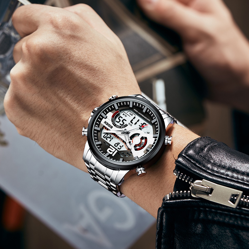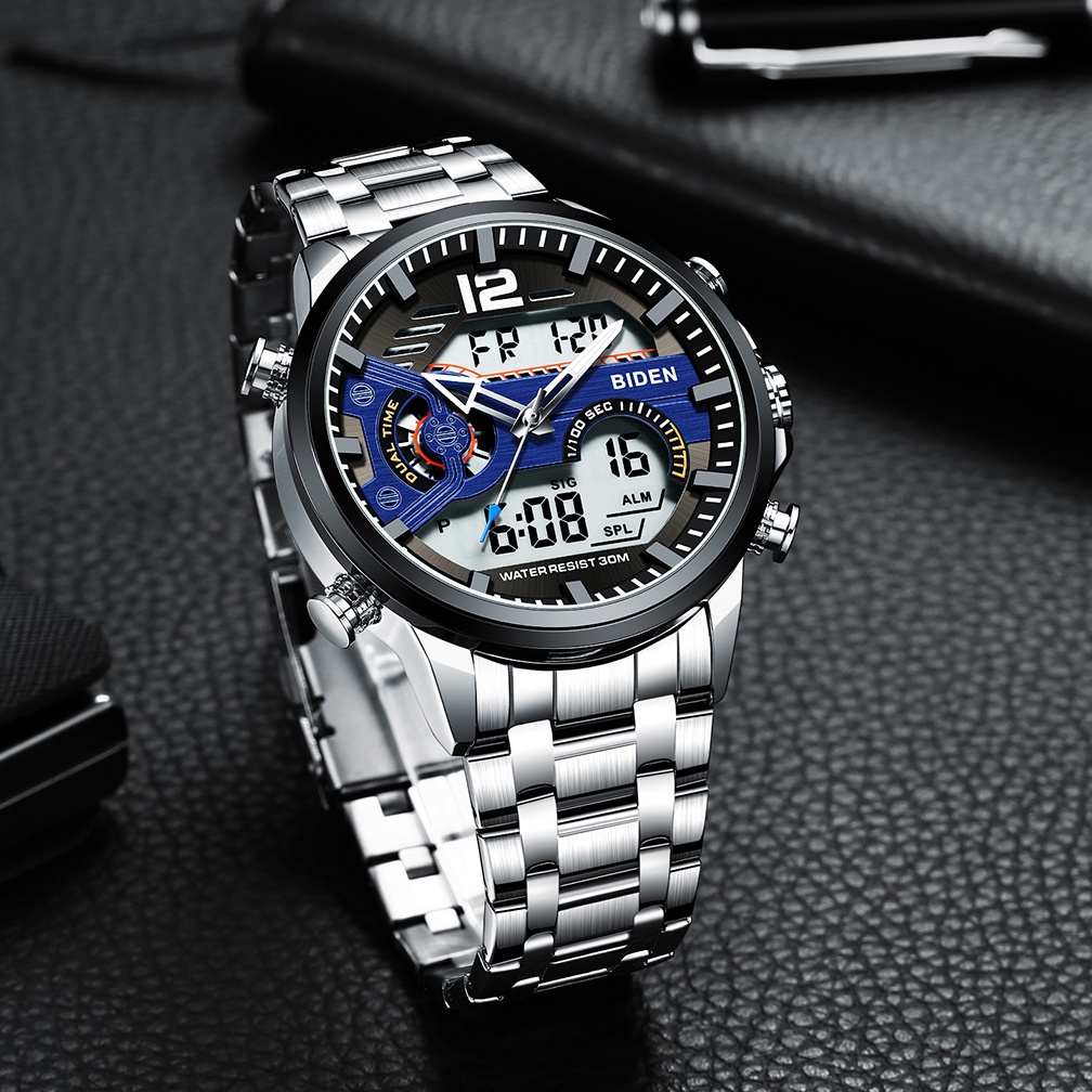 BIDEN Jam Tangan Pria Anti Air Original Dgital&Analog Olahraga Bisnis Multifungsi Tali Stainless Steel Jam Tangan Cowok