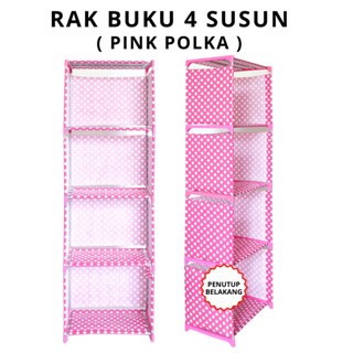 RAK BUKU 5 Tingkat 4 Susun Lemari Kain Layer Grid Portable DENGAN PENUTUP BELAKANG Penyimpanan Baju Sepatu Helm Rak Serbaguna Bongkar Pasang Kokoh dan Kuat