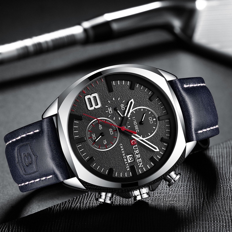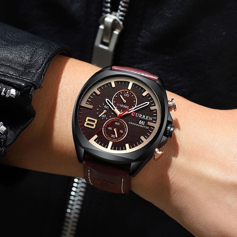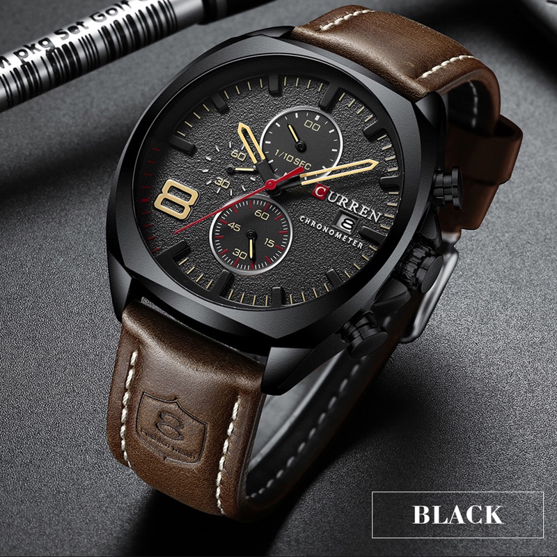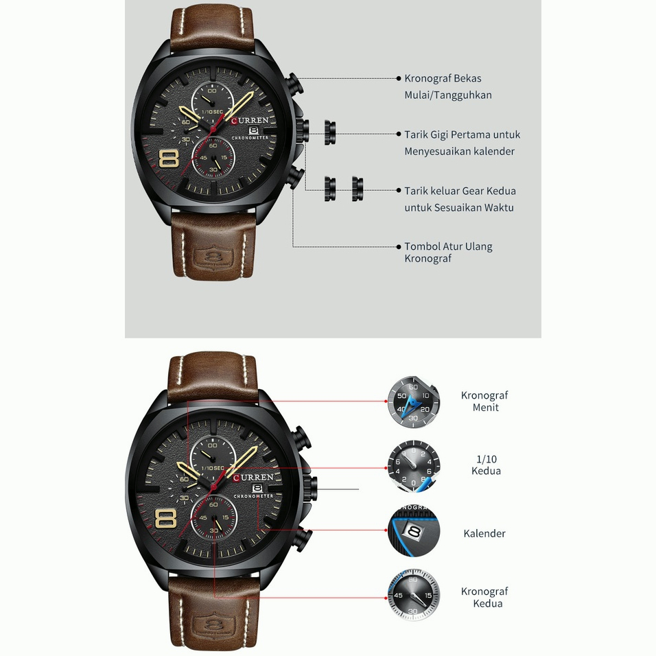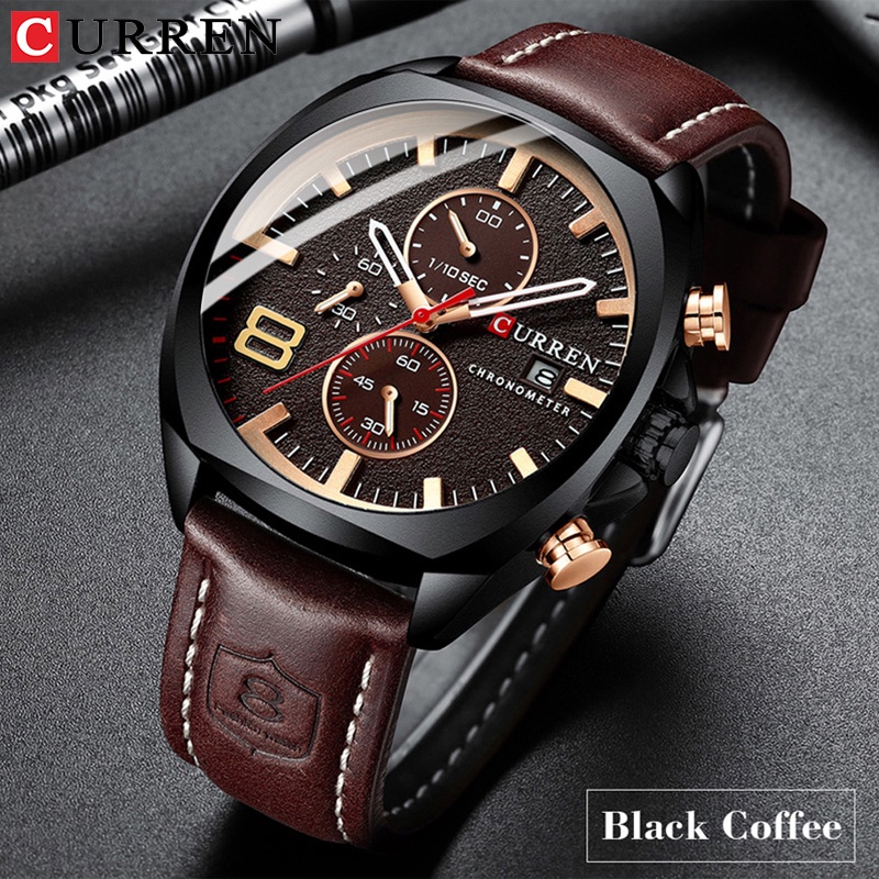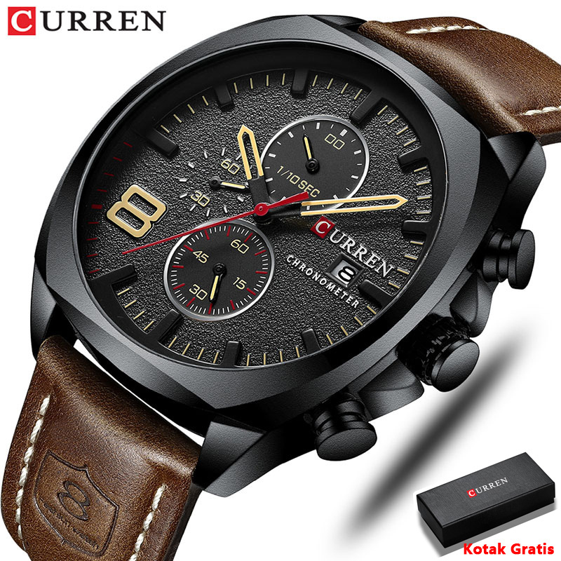 Jam Tangan Pria CURREN Fashion Sports Chronograph Jam Tangan Kulit Militer Kuarsa Tahan Air 8324