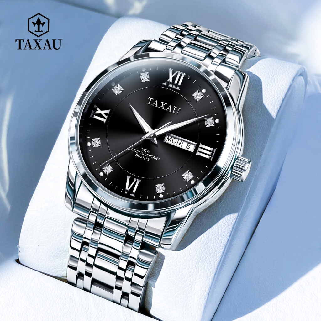 TAXAU Jam Tangan Pria Original 100 PERSEN Terbaru Analog Stainless Steel Rantai Anti Air Keren Watch Men
