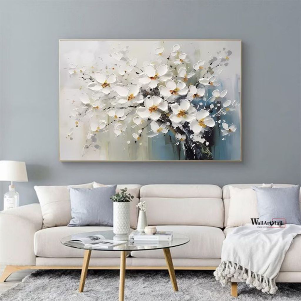 Hiasan Dinding Aesthetic Lukisan Bunga Minimalis Tekstur Timbul