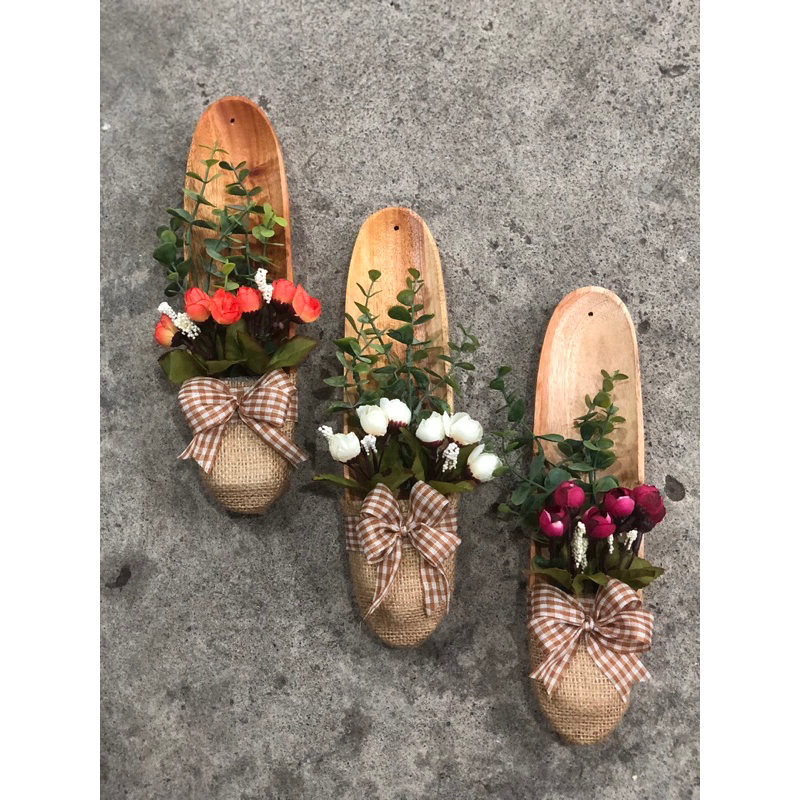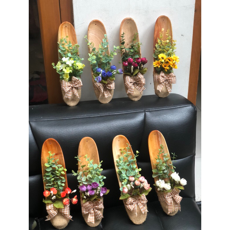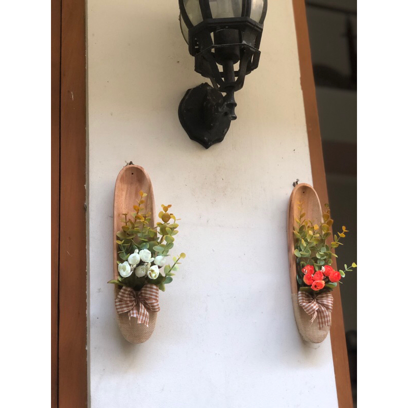 Hiasan Dinding Sepatu Bunga Unik / Hiasan Dinding Kayu Estetik Rustic
