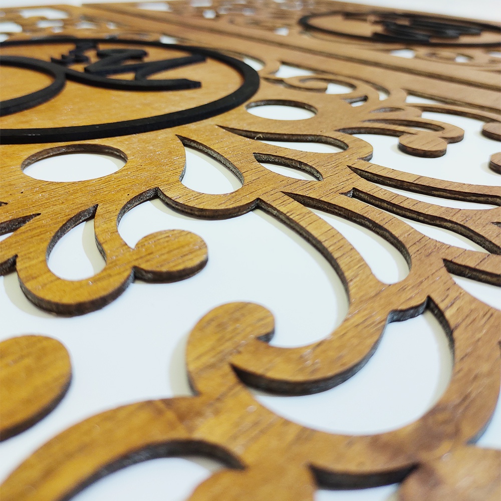 Hiasan dinding kayu motif kaligrafi tulisan allah muhammad pajangan rumah dekorasi ruangan minimalis
