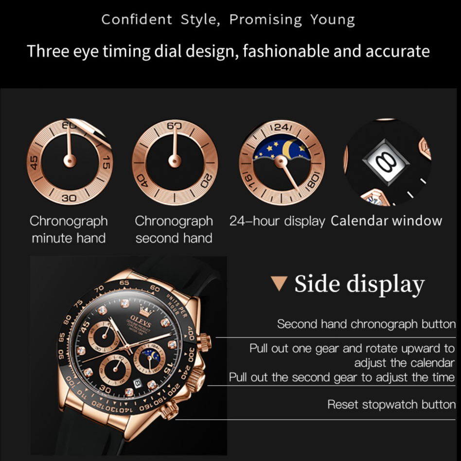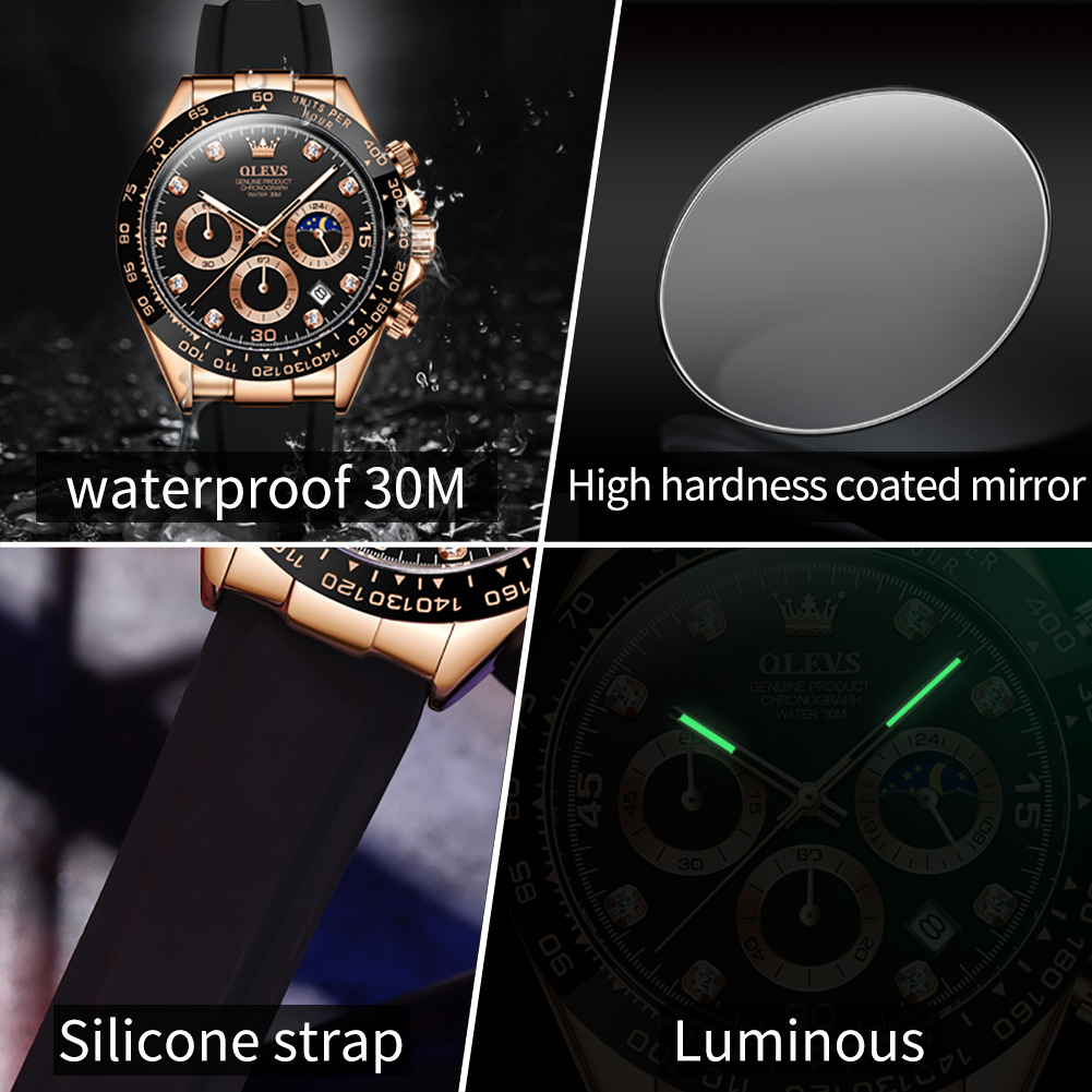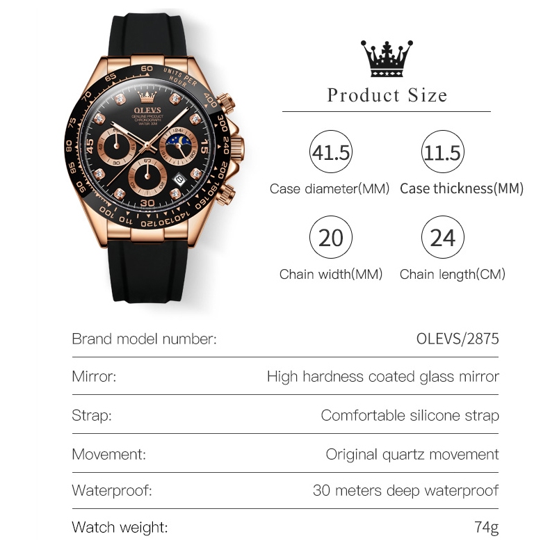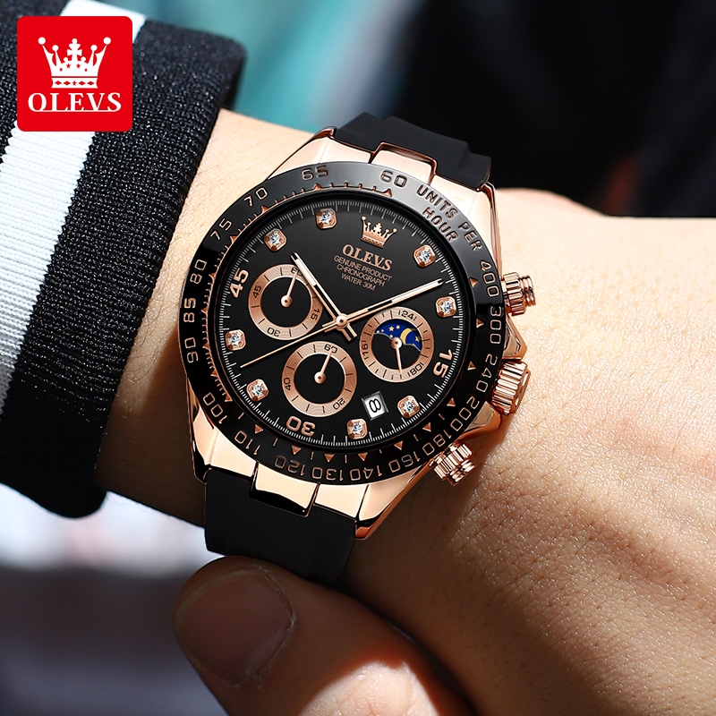 OLEVS Jam Tangan Pria Anti Air Original Terbaru Mewah Keren Chronograph Tahan Hitam Multifungsi Watch Men Model 2875