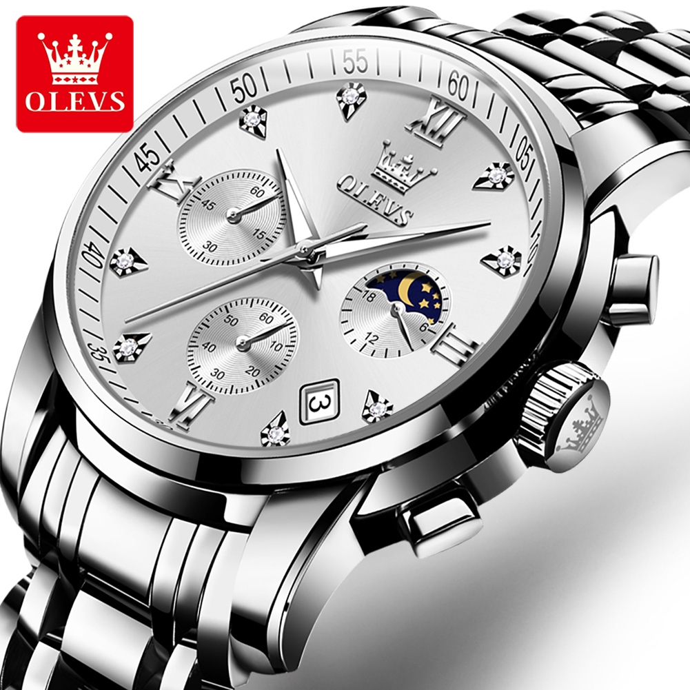 OLEVS Jam Tangan Pria Anti Air Original Stainless Steel Terbaru Mewah 2025 Chronograph Multifungsi Watch Men 2858