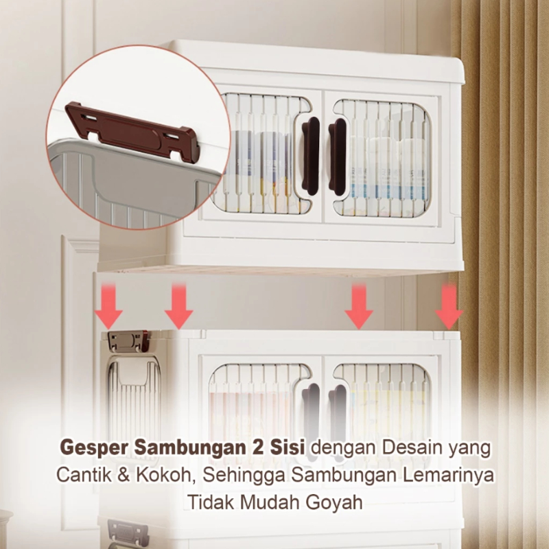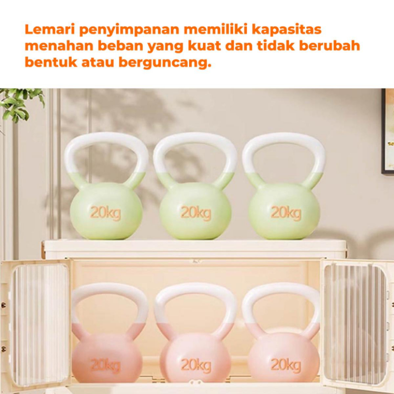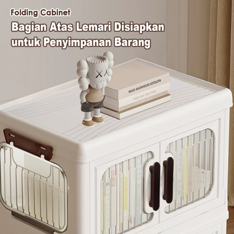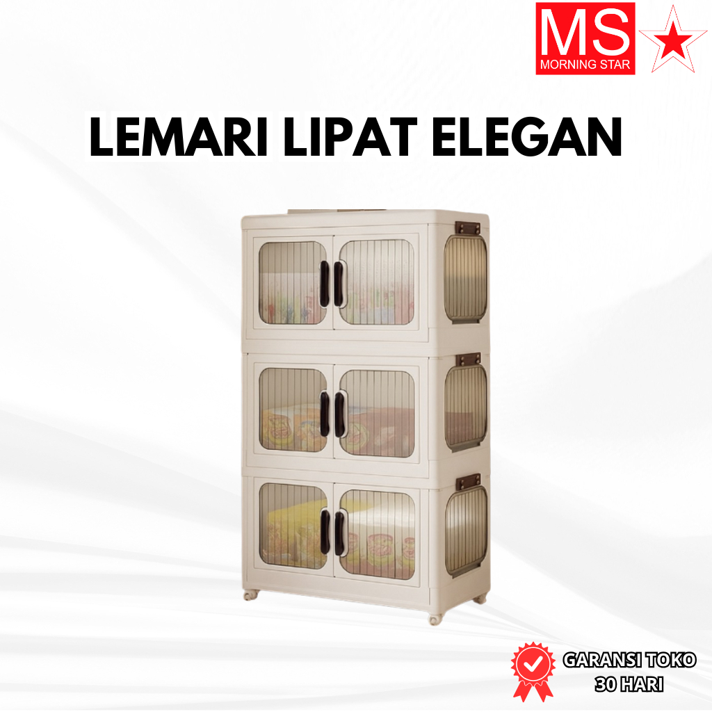 Morning Star Lemari Lipat Plastik Rak Susun Portable Rak Kabinet Penyimpanan Serbaguna Beroda H2