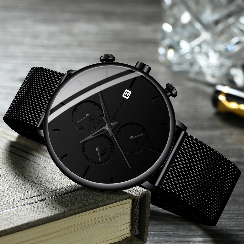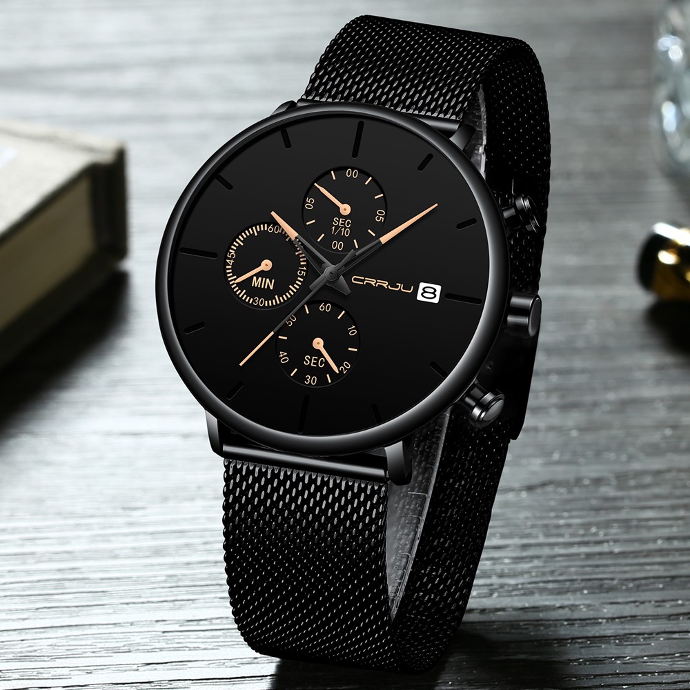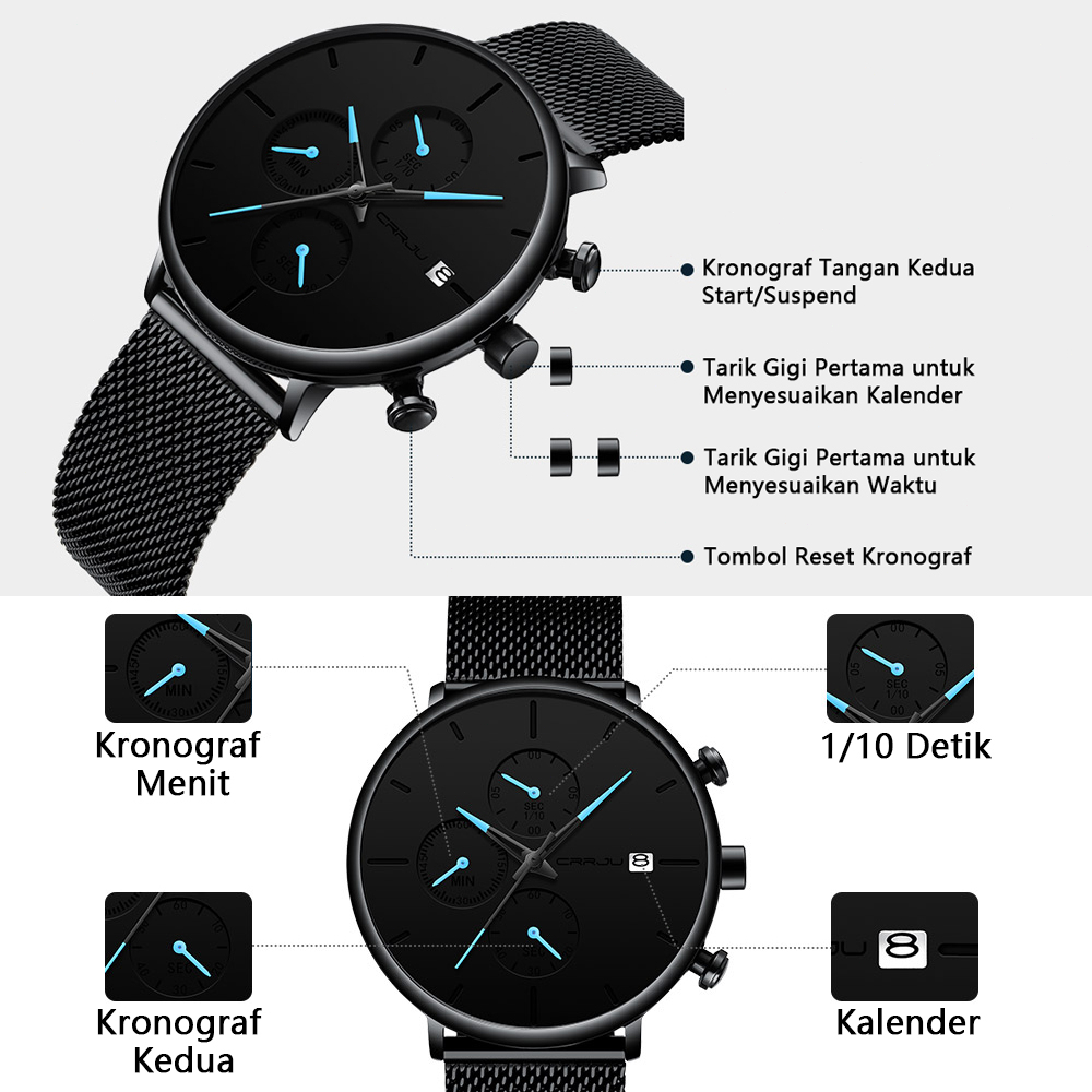 CRRJU Jam Tangan Pria Casual Quartz Analog Casing Stainless Steel Chronograph Kuarsa Kalender Tahan Air + [Gift Box]
