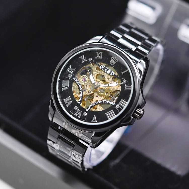 Jam Tangan Pria Rolex Rantai Automatic ( Tanpa Baterai ) Premium Transparan Free Box Ori Rolex ( FREE GELANG )