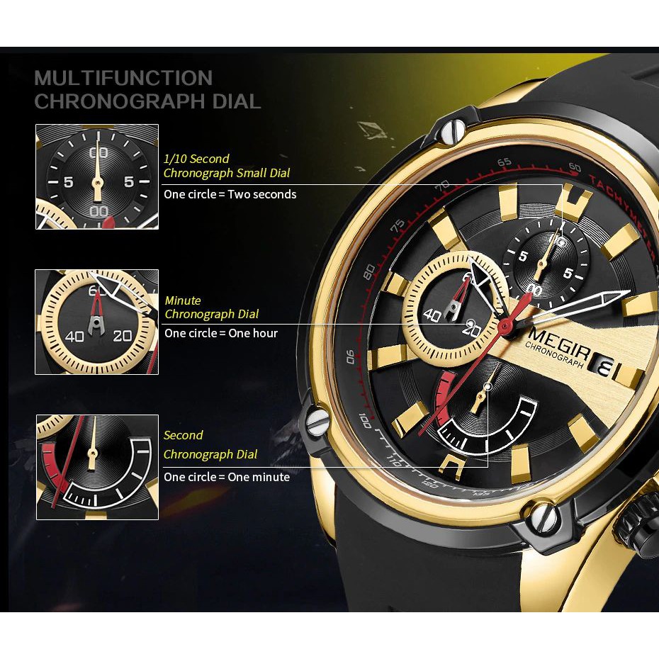 MEGIR 2086 Jam Tangan Pria Analog Chronograph Aktif Aktif Tali Silicone CURRENOS