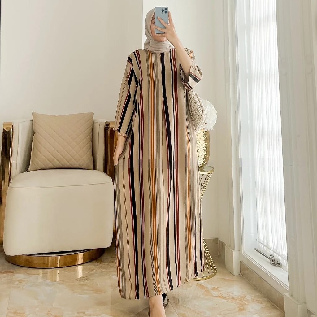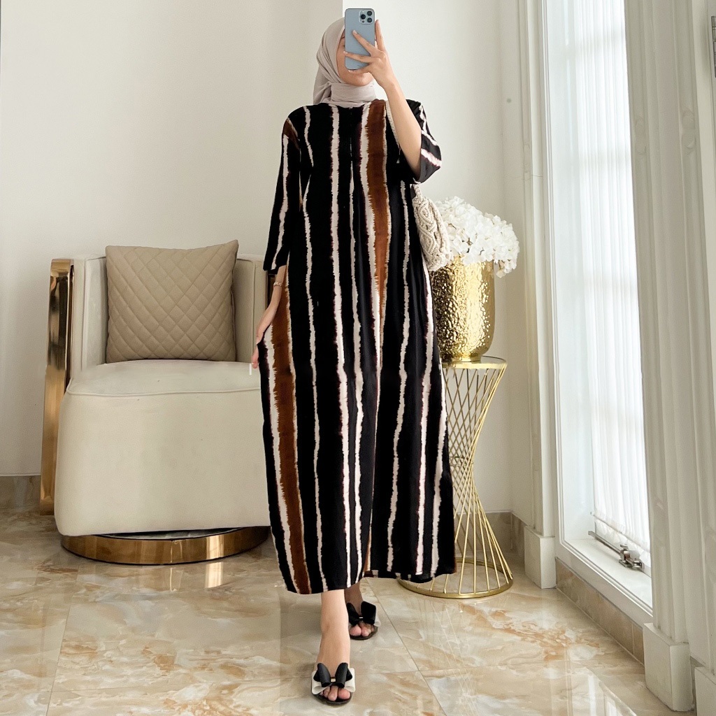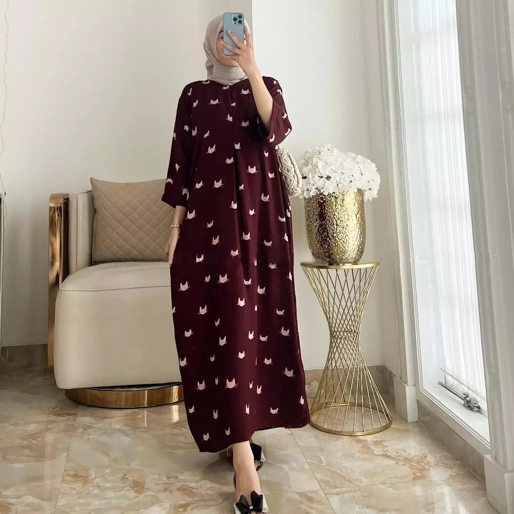 Daster Viral Kekinian Gamis Midi Dress Lengan 3/4 Rayon Motif Premium