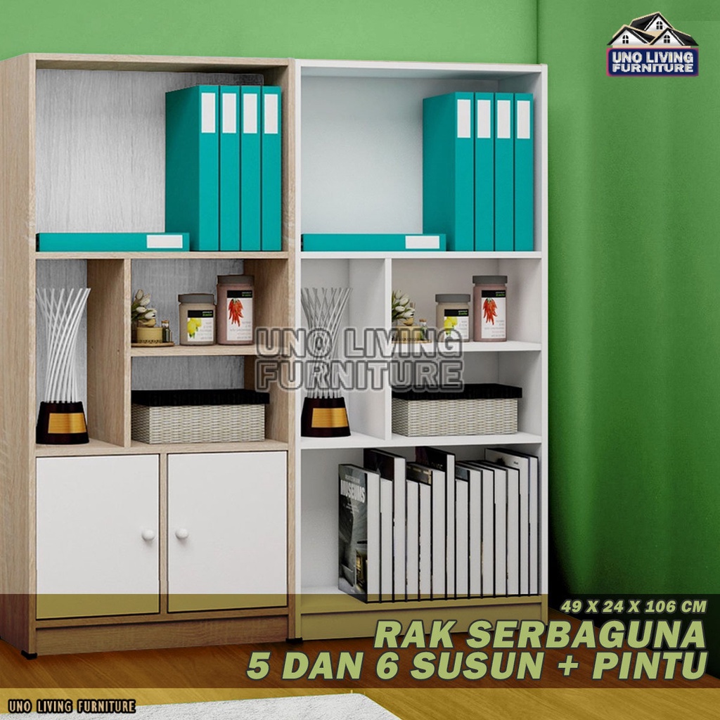 LEMARI Rak BUKU SerbAGUNA RSG 5 Rak KAYU TERBARU MurAH Rak 5 SUSUN DENGAN PINTU