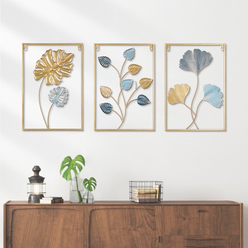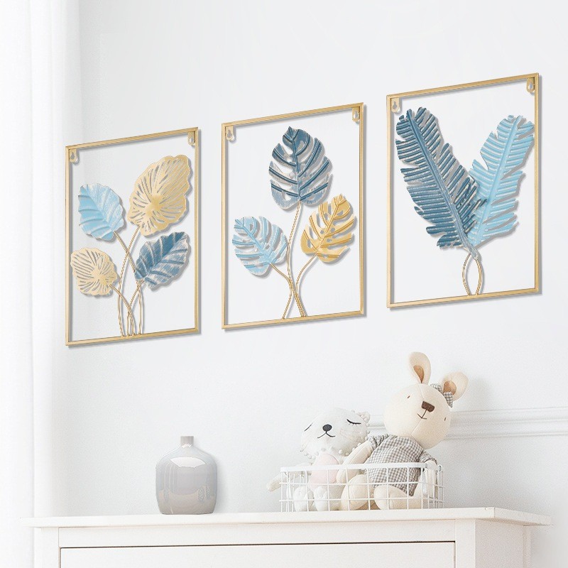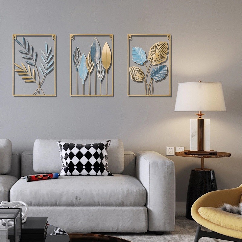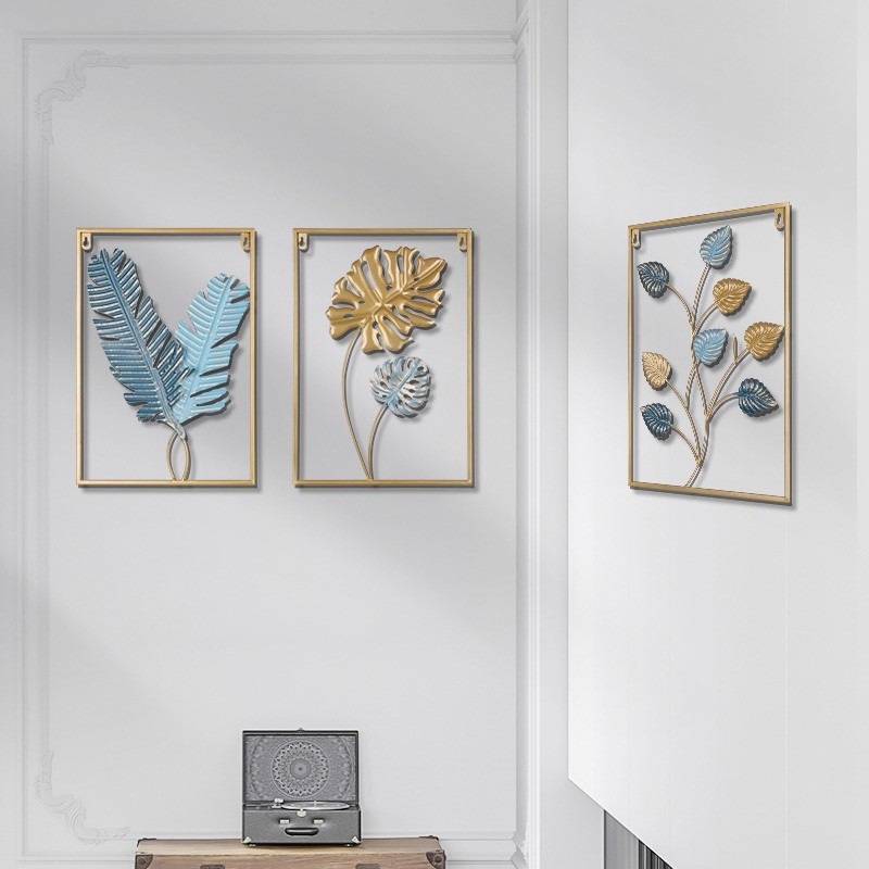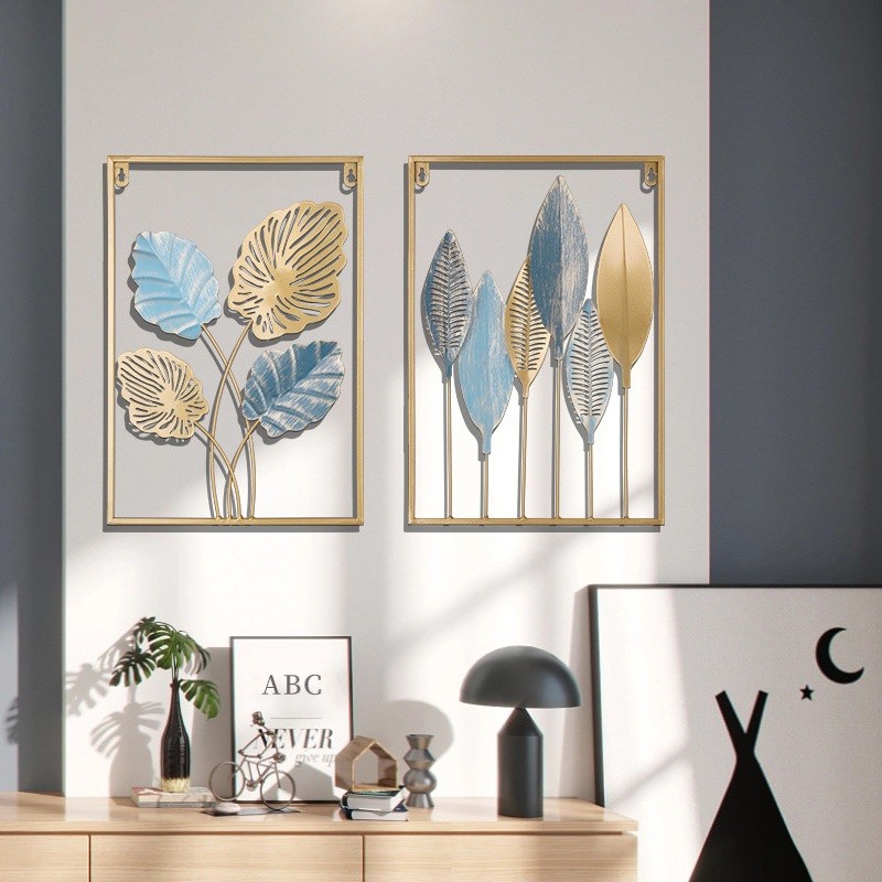 【Termurah】 Lukisan Dekoratif Daun Berwarna-warni / Dekorasi Daun Logam / Dekorasi Dinding Logam / Dekorasi Gantung Latar Belakang Ruang Tamu Modern