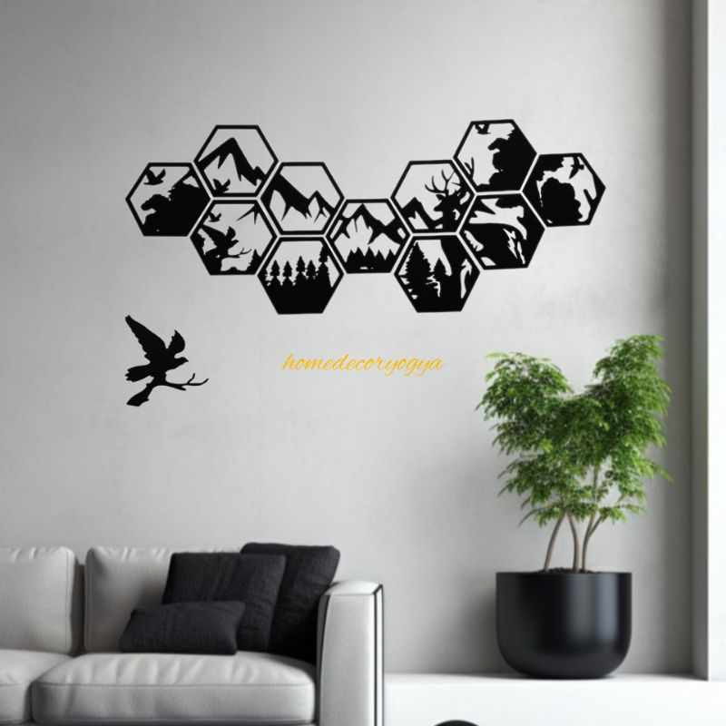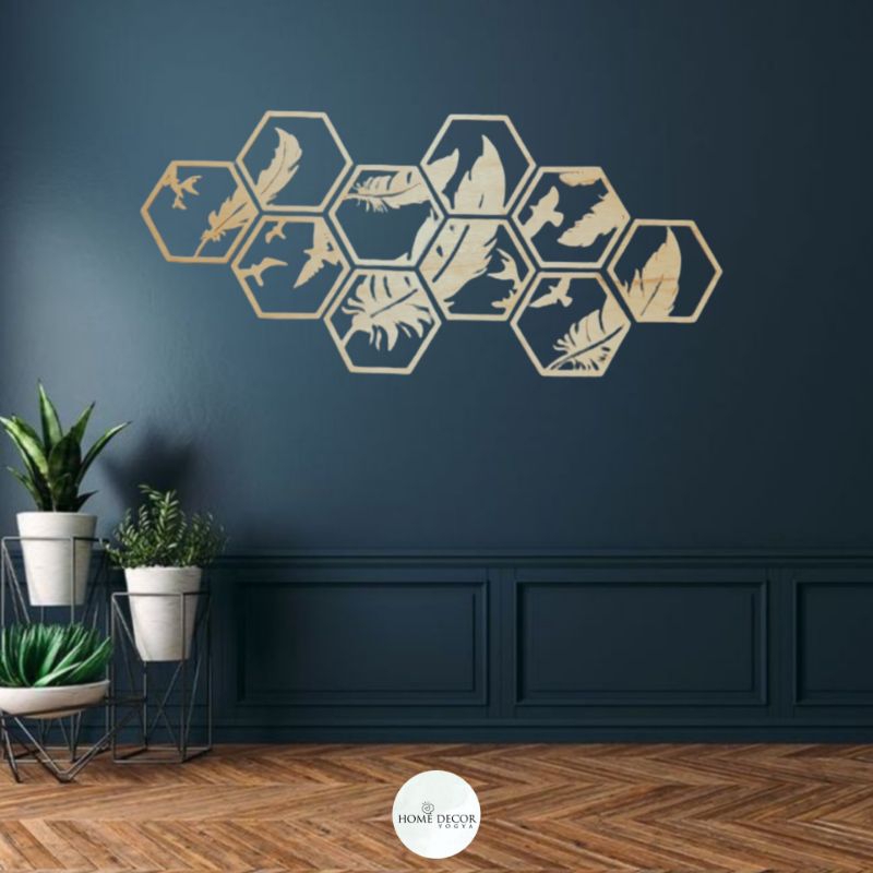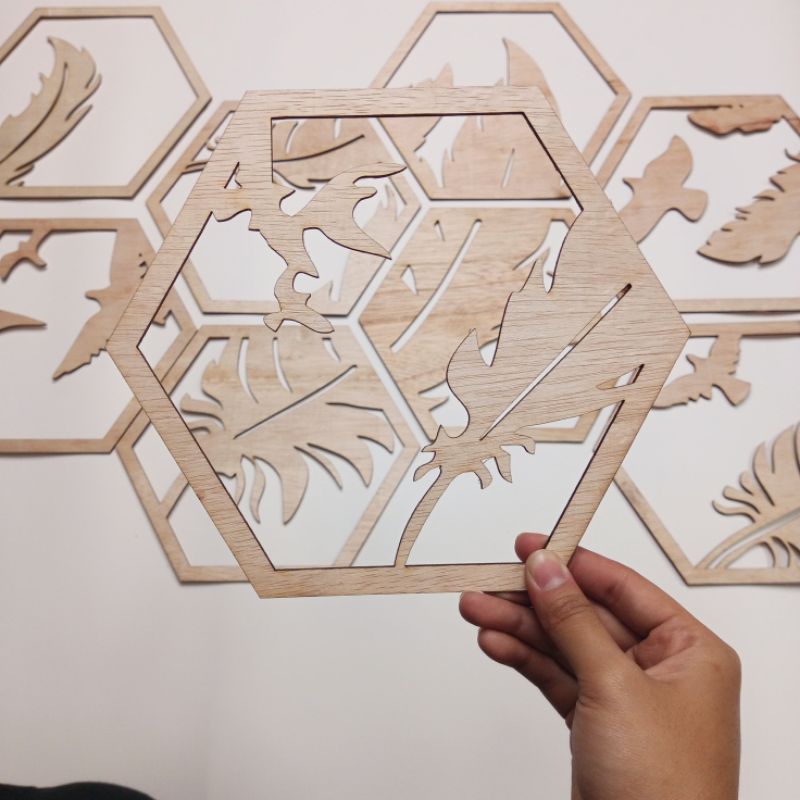 WALL DECOR 3D HEXSAGONAL KERAJINAN KAYU AESTETIK Laser Cutting