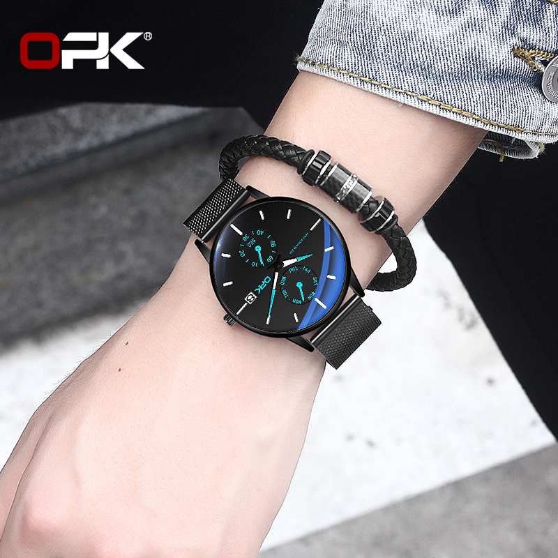 OPK Jam Tangan Pria Anti Air Original Unik Terbaru 2025 Bisnis Stainless Steel Luminous Kalender Analog Fashion Men Watch
