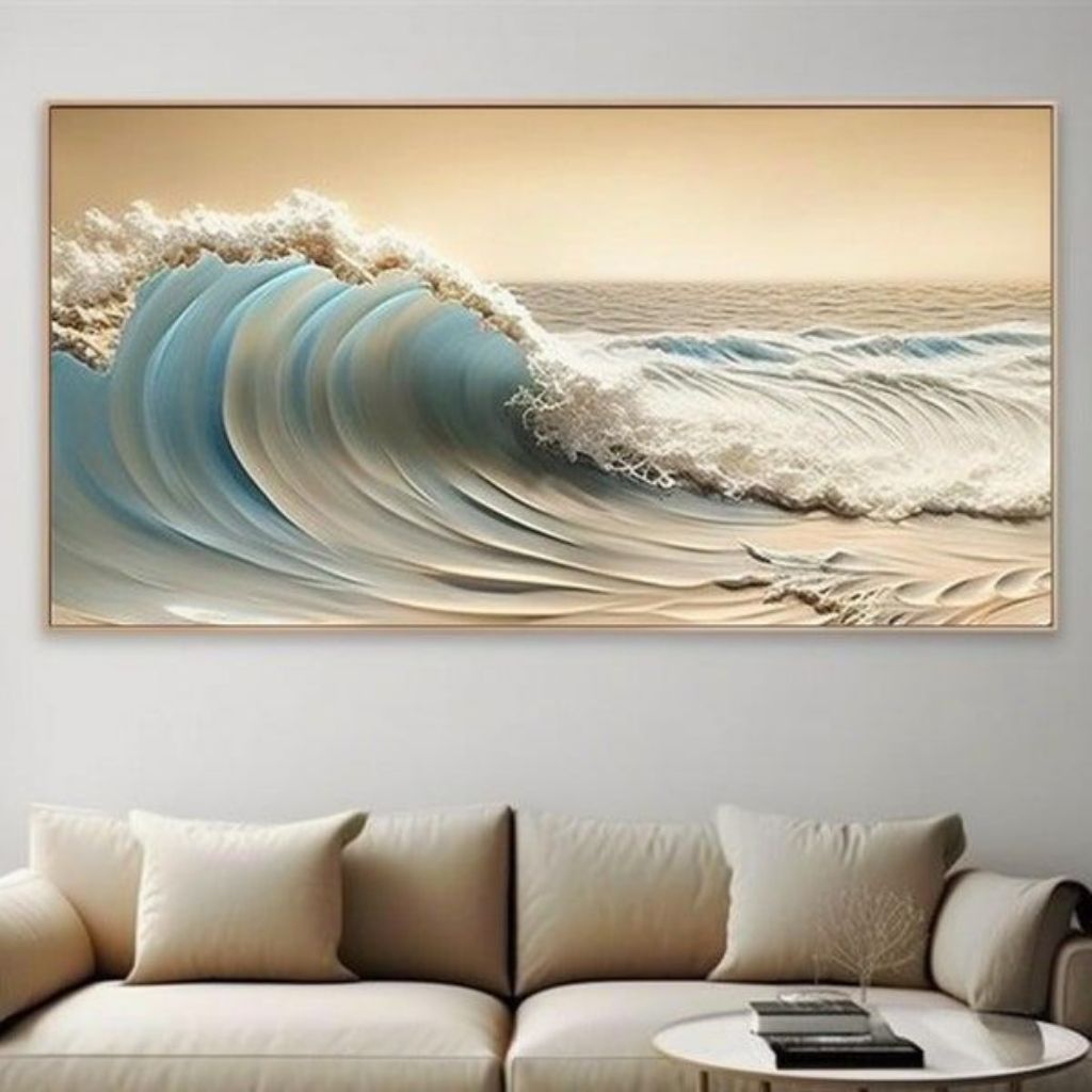 Hiasan Dinding Aesthetic Lukisan Ombak Modern Minimalis Tekstur Timbul