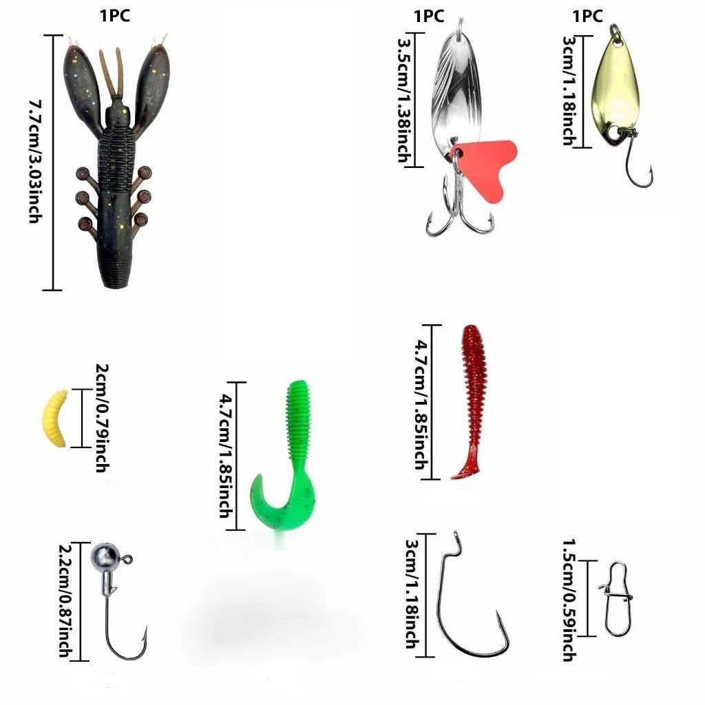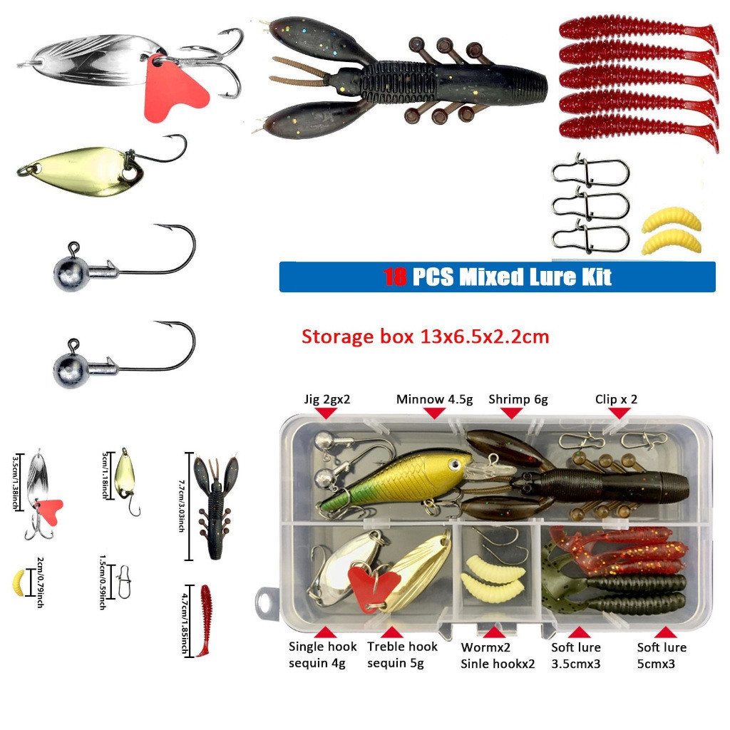 LUC 18 pcs Set Umpan Serbaguna Lembut Kit Plastik Alat Pancing Berpayet Keras Alat Pancing Guntur Kotak Penyimpanan