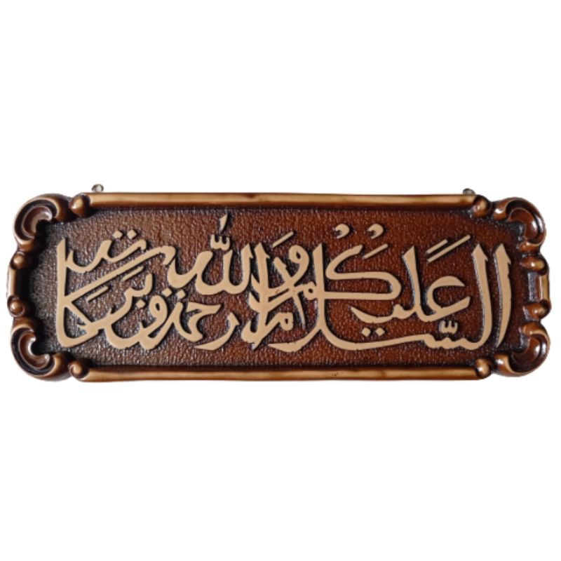 LUKISAN KALIGRAFI ASSALAMUALAIKUM UKURAN 30x10x2 cm HARGA PER PCS DEKORASI DINDING
