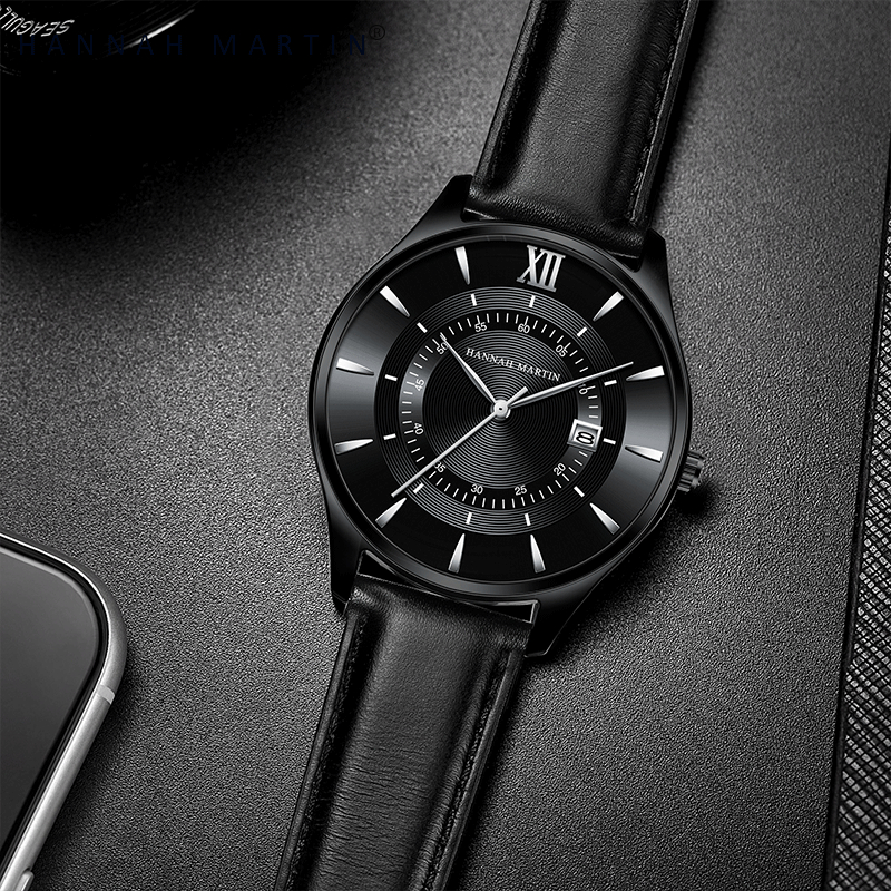 HANNAH MARTIN Jam Tangan Pria 100 PERSEN Original Model Terbaru Keren Quartz COWOK Kulit Anti Air Men Watch Laki Arloji Men Watch 1231