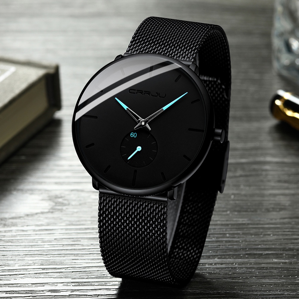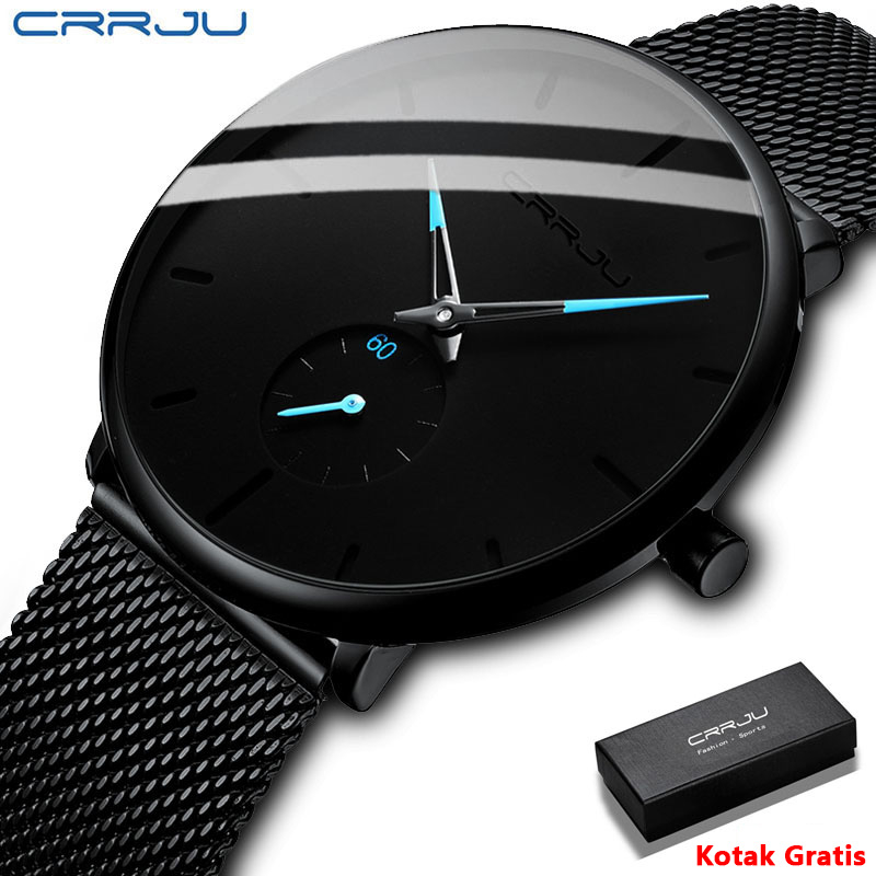 JAM TANGAN PRIA CRRJU KEREN ELEGANT SIMPLE STAINLESS WATERPROOF STEEL MESH BELT WATCH Jam Tangan Kuarsa 2150