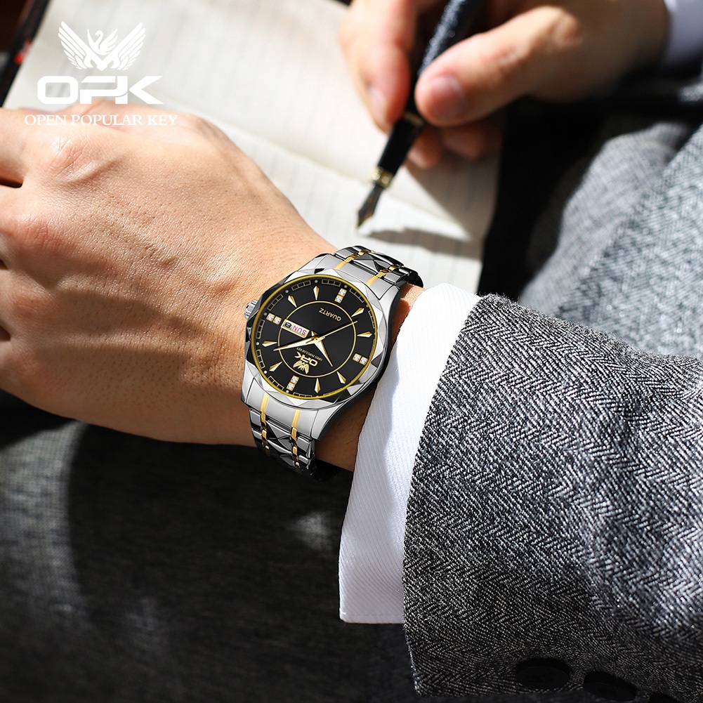 OPK Jam Tangan Pria Anti Air Original 100 PERSEN Cowok Tahan Analog Terbaru Stainless Steel Waterproof Genuine Hitam Watch