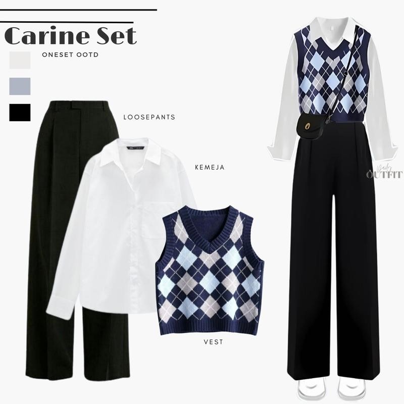 Carine Outfit Set wanita ( Vest Rajut + Kemeja Celana Kulot ) Setelan One Set OOTD Korean Style