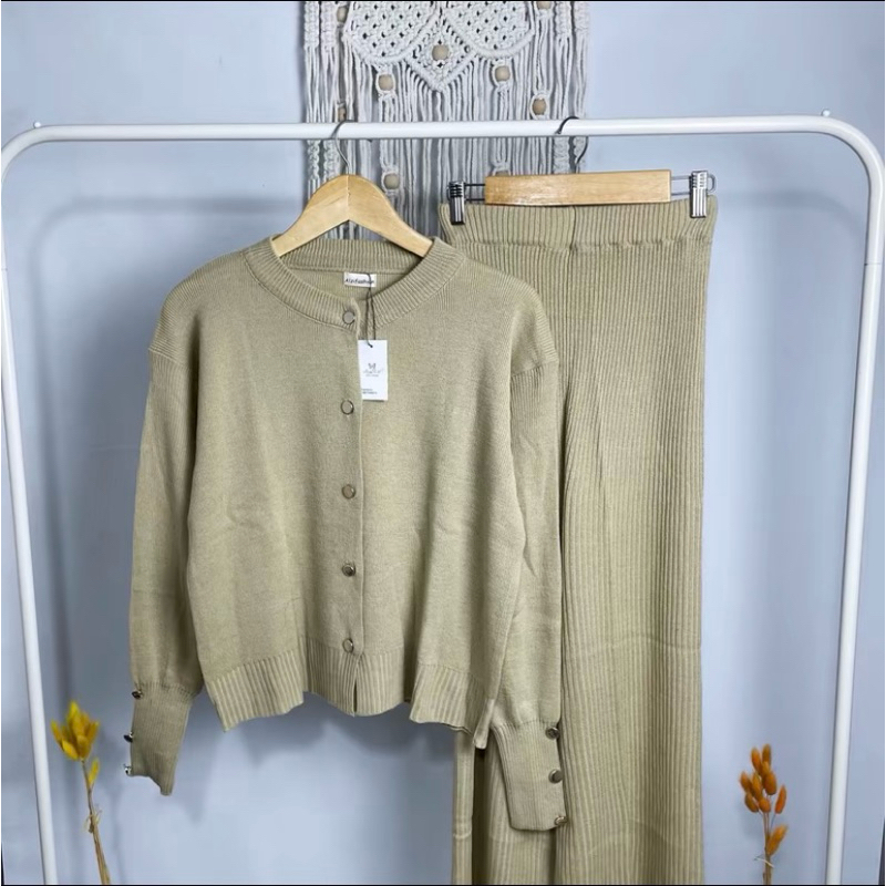 Oneset Starla Cardigan Kancing dan Celana Kulot Pants Knit Tebal Premium