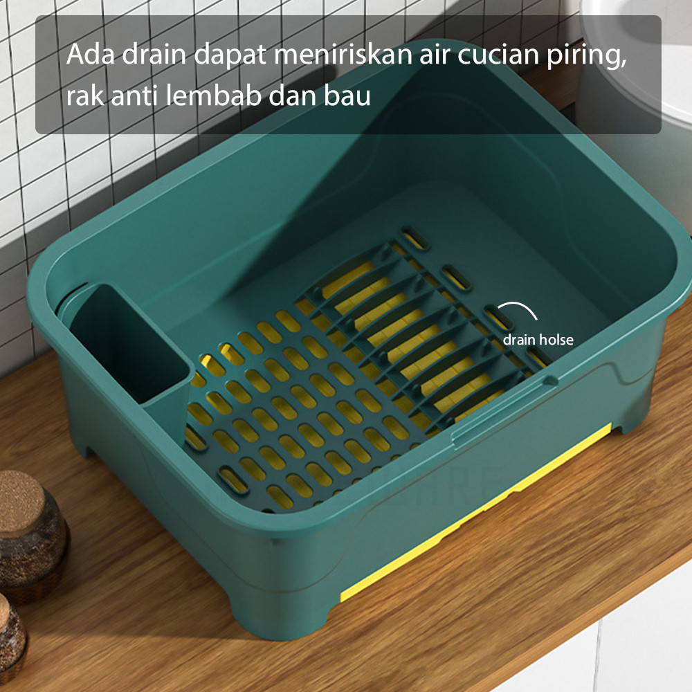 HUGO Rak Pengering Piring Mangkok Rak Piring Plastik Dengan Tutup Rak Piring Mangkok Sendok Garpu Rak Dapur Multifungsi