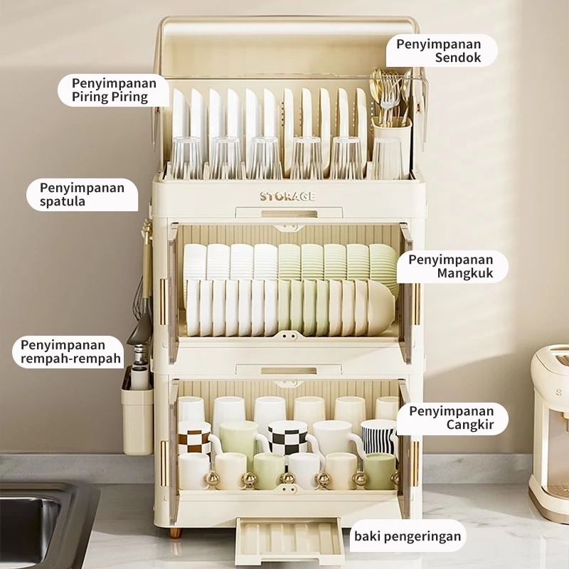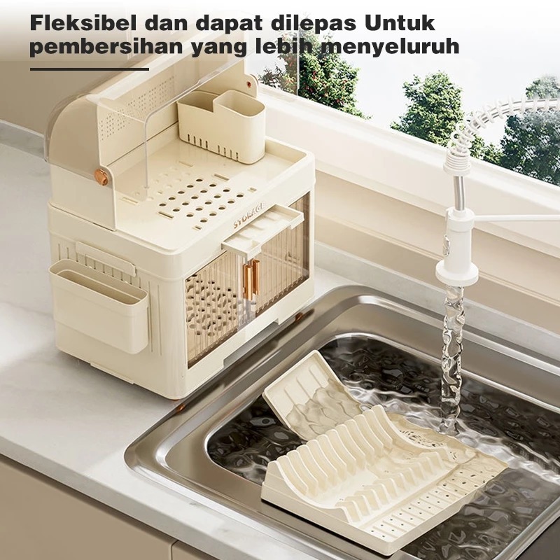 Alby Mart Drying Rack Cabinet Rak Pengering Piring Lipat Rak Cuci Piring Rak Mangkok Dapur Rak Piring Plastik Tertutup