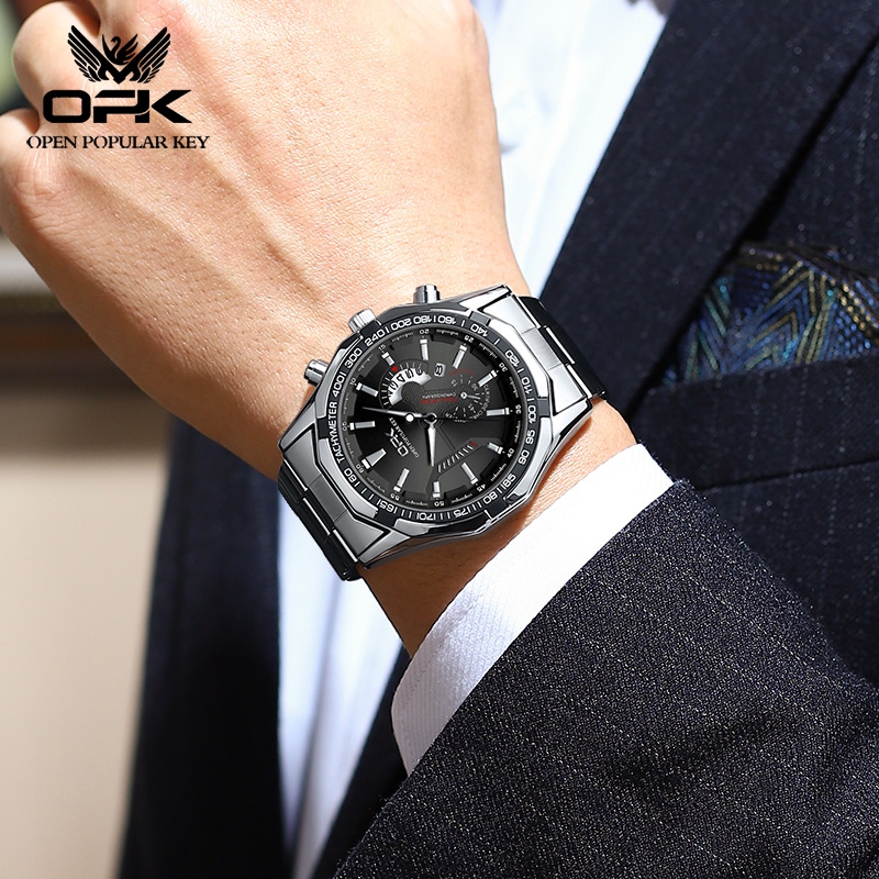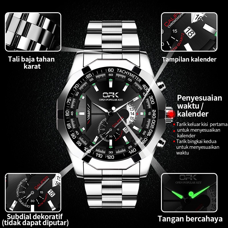 OPK Jam Tangan Pria Anti Air Original Anti Karat Luxury Bercahaya Kalender Multifungsi Quartz Watch 8108
