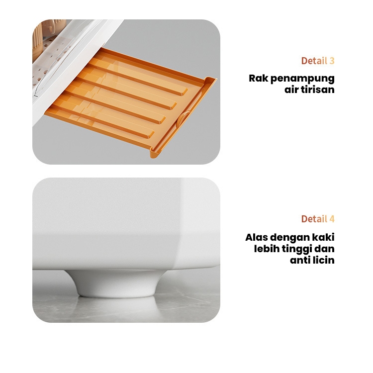 Dejavu Rak Pengering Air Mangkok Rak Piring Plastik Dengan Tutup Rak Piring Garpu Rak Dapur HLB402