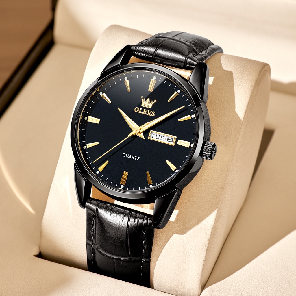 OLEVS Jam Tangan Pria Anti Air Original Tahan Kulit Tali Laki Laki Cowok Analog Men Watch Hitam Biru Putih Model 6898