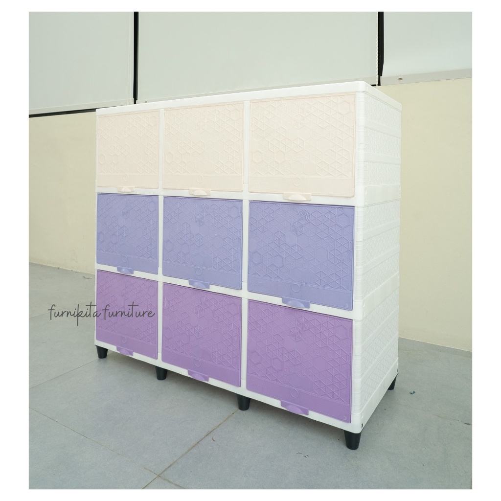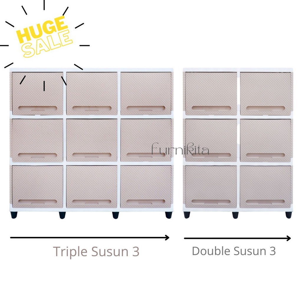 LEMARI Plastik Triple Club FLIP Susun 3 Meja TV Minimalis Penyekat Ruangan