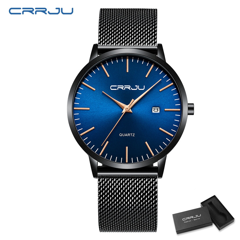 CRRJU Jam Tangan Pria Fashion Kuarsa Ultra Tipis Jam Tangan Cowok Olahraga Kasual Tahan Air