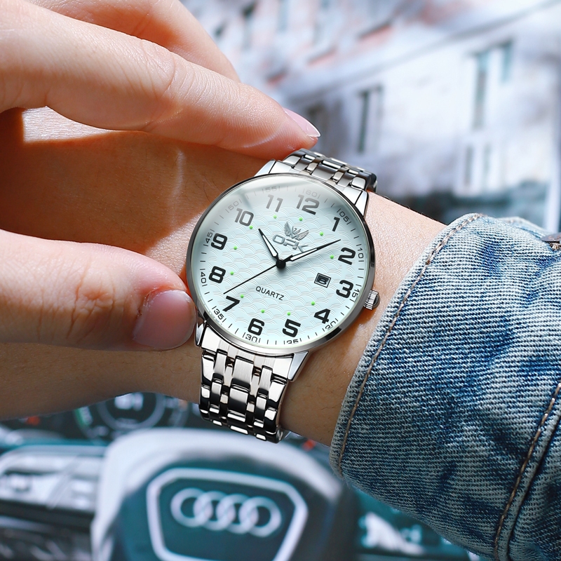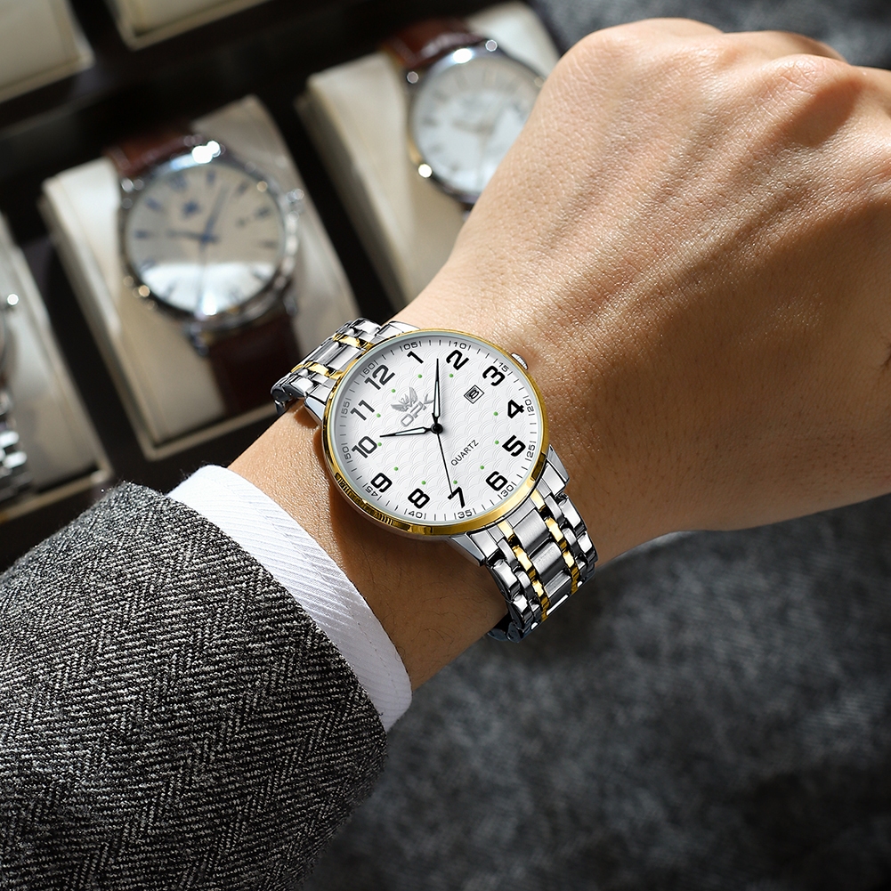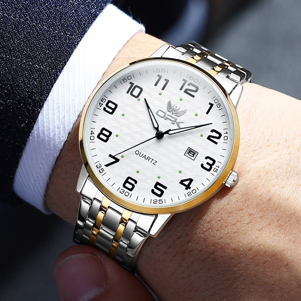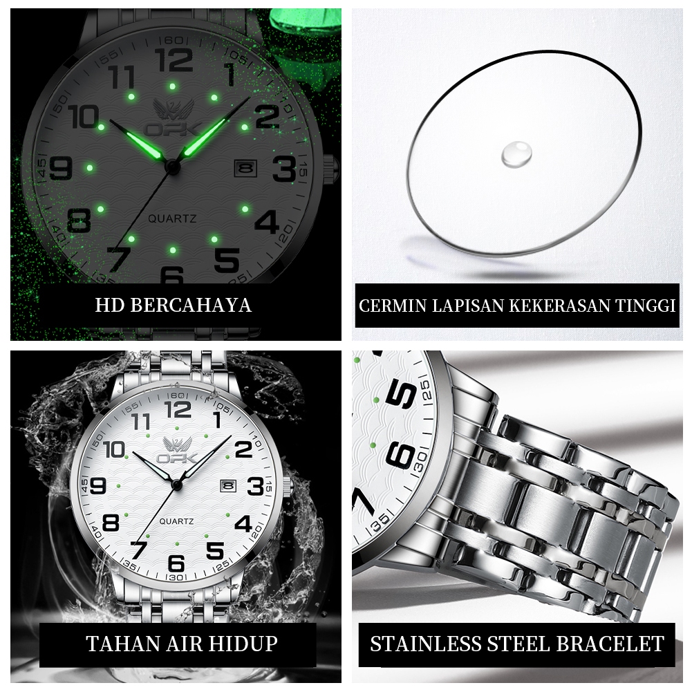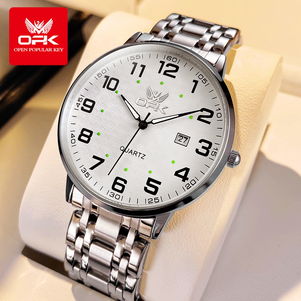 OPK Jam Tangan Pria Anti Air Original Cowok Luminous Kalender Tali Stainless Steel Bisnis Fashion Men Watch Model 6006