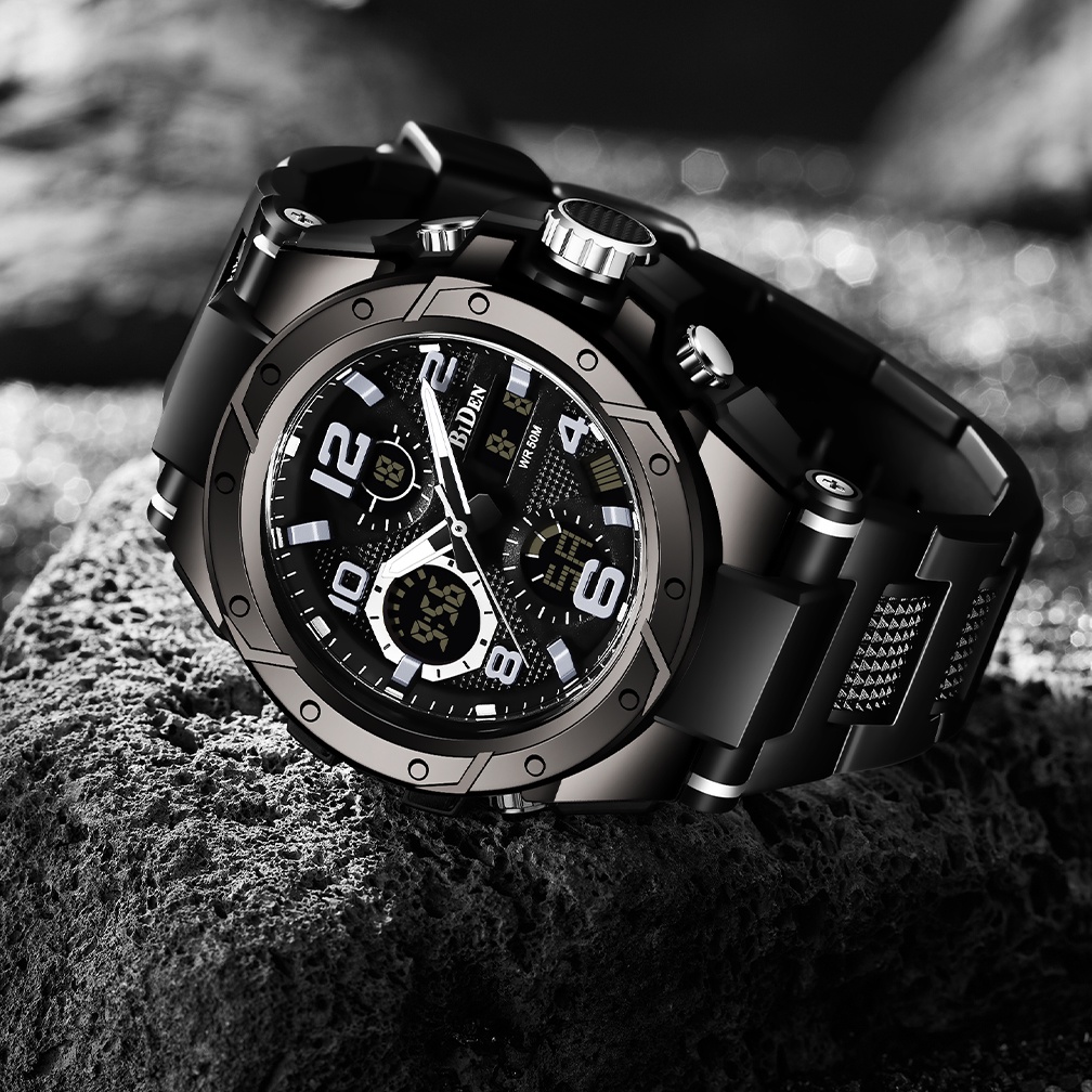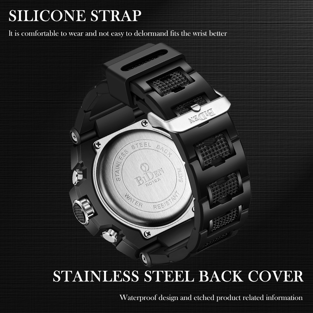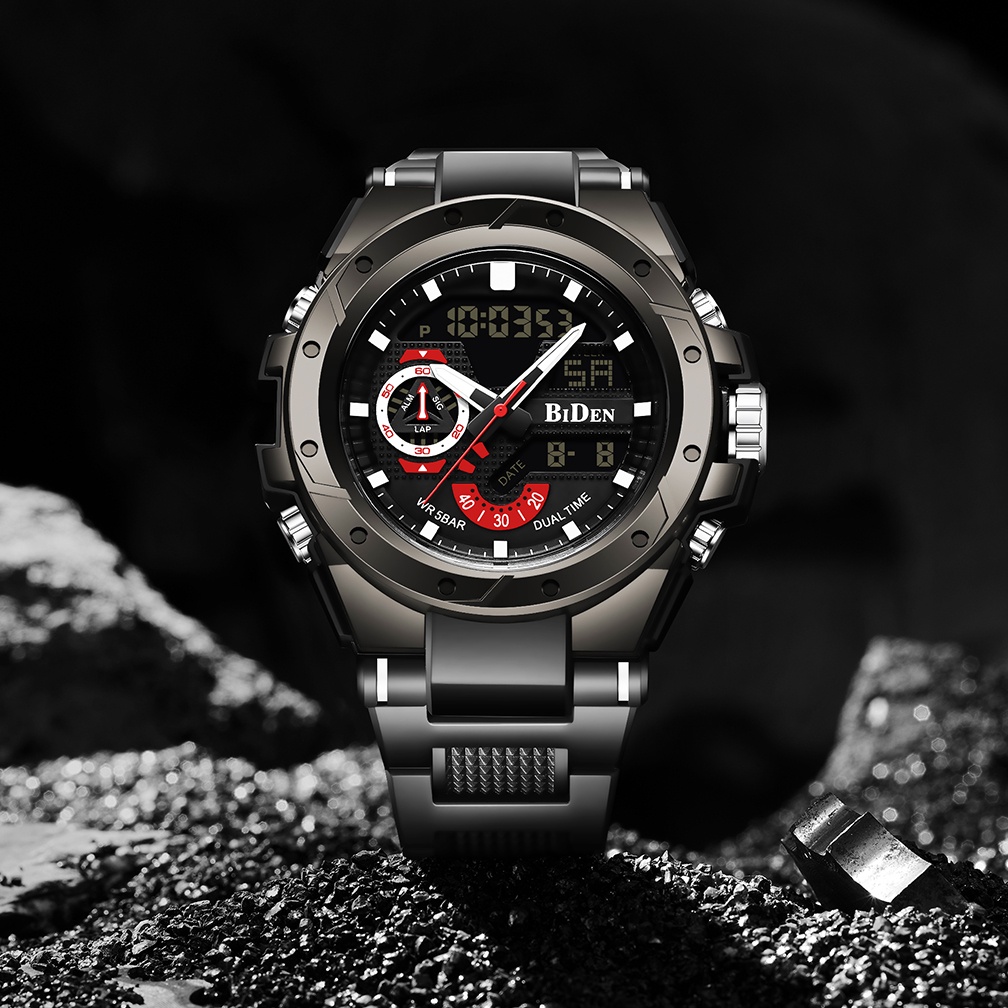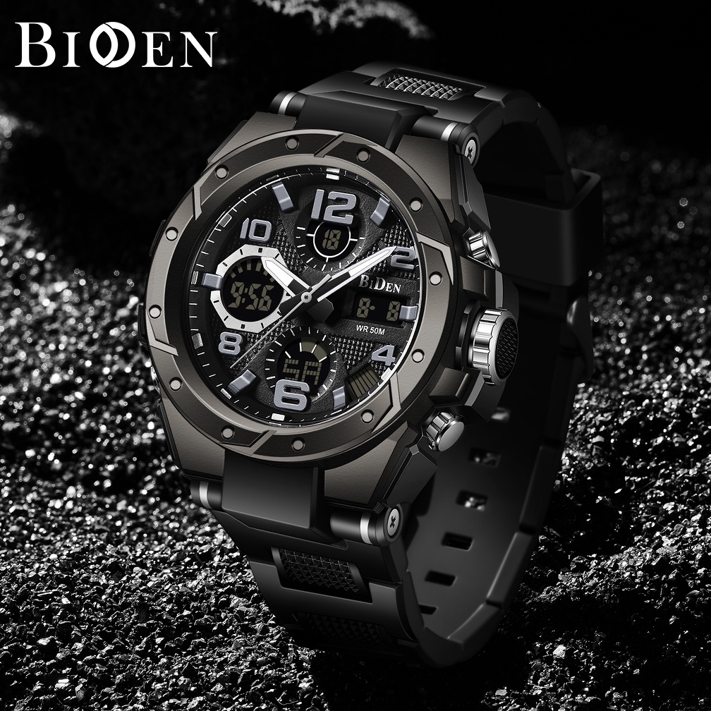 BIDEN Jam Tangan Pria Anti Air Original Multifungsi Bercahaya Alarm Tali Silikon Jam Tangan Pria Digital Jam Tangan Cowok