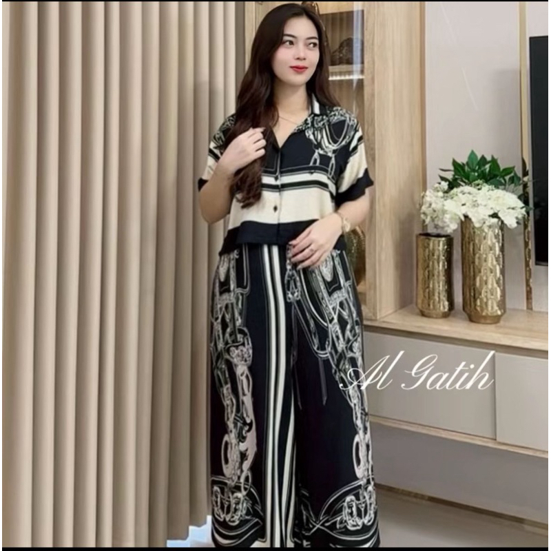 One Set Crop Stelan Celana Kulot Bunga-Bunga